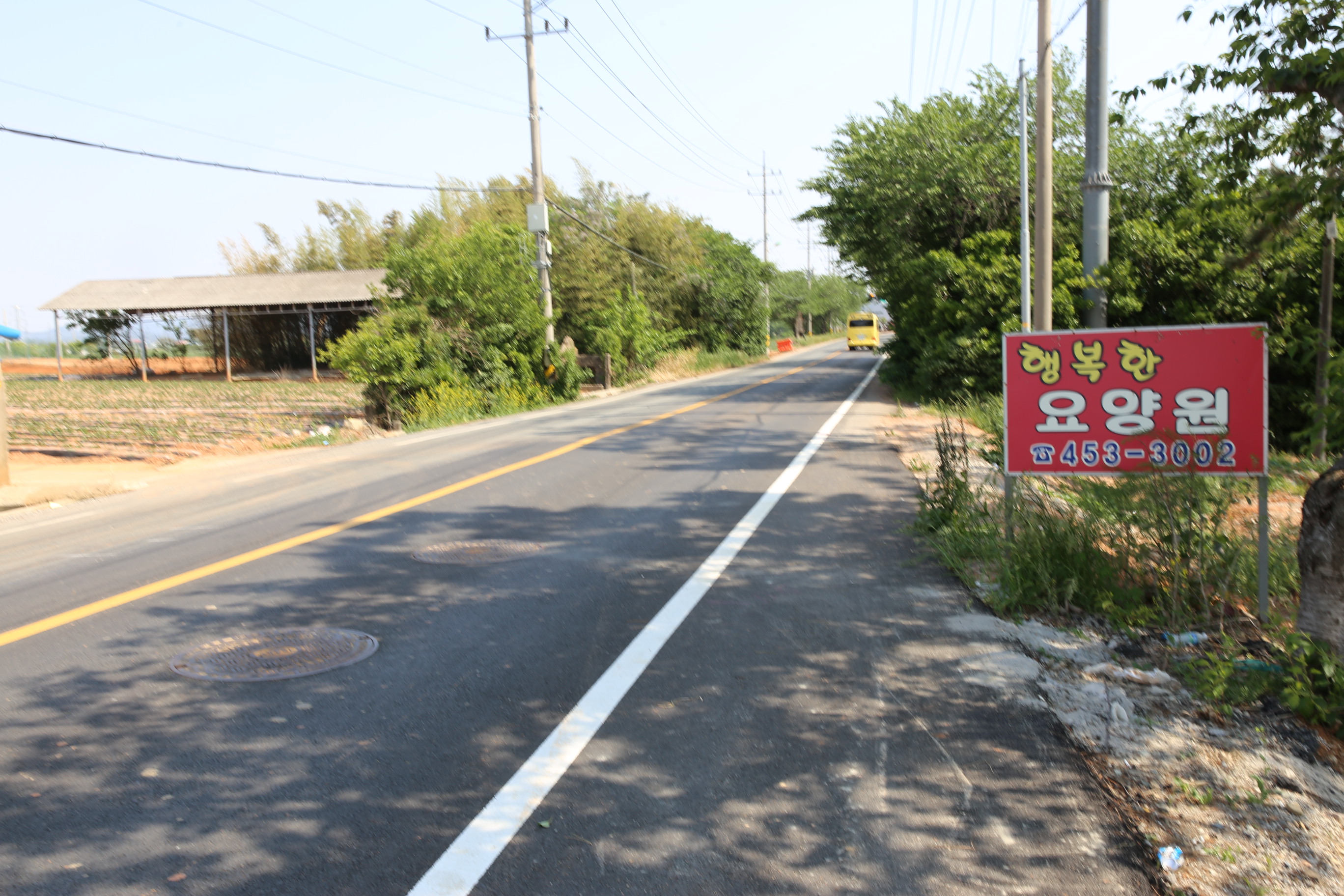 *정미소 지나 행복요양원 입간판 앞에서 도로건너 좌측으로 도로에서 이탈 진행.
