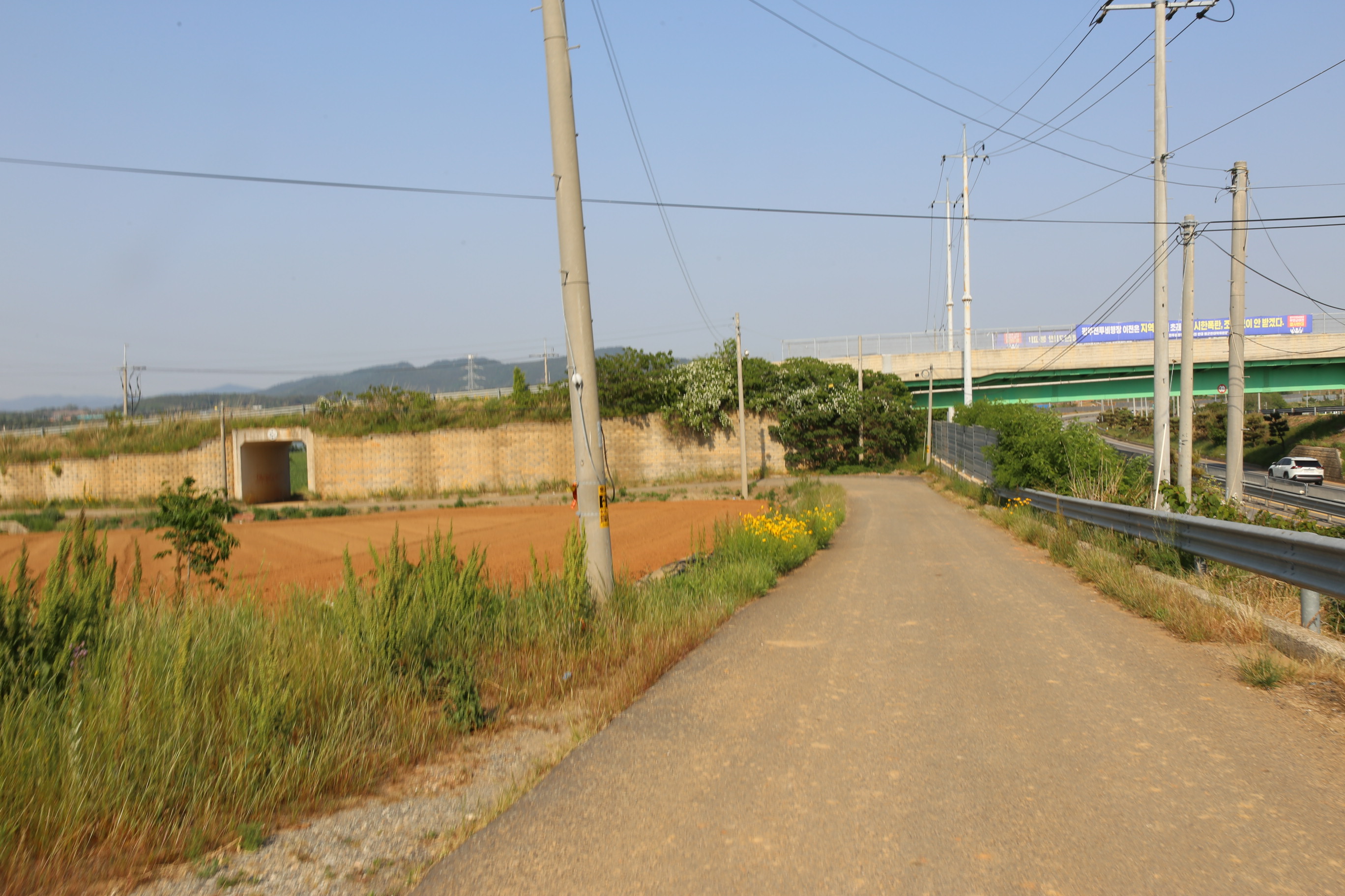 *다시 왕복4차로 도로와 합류 우리의 걷기 길은 직진 도로 아래 길로 진행.