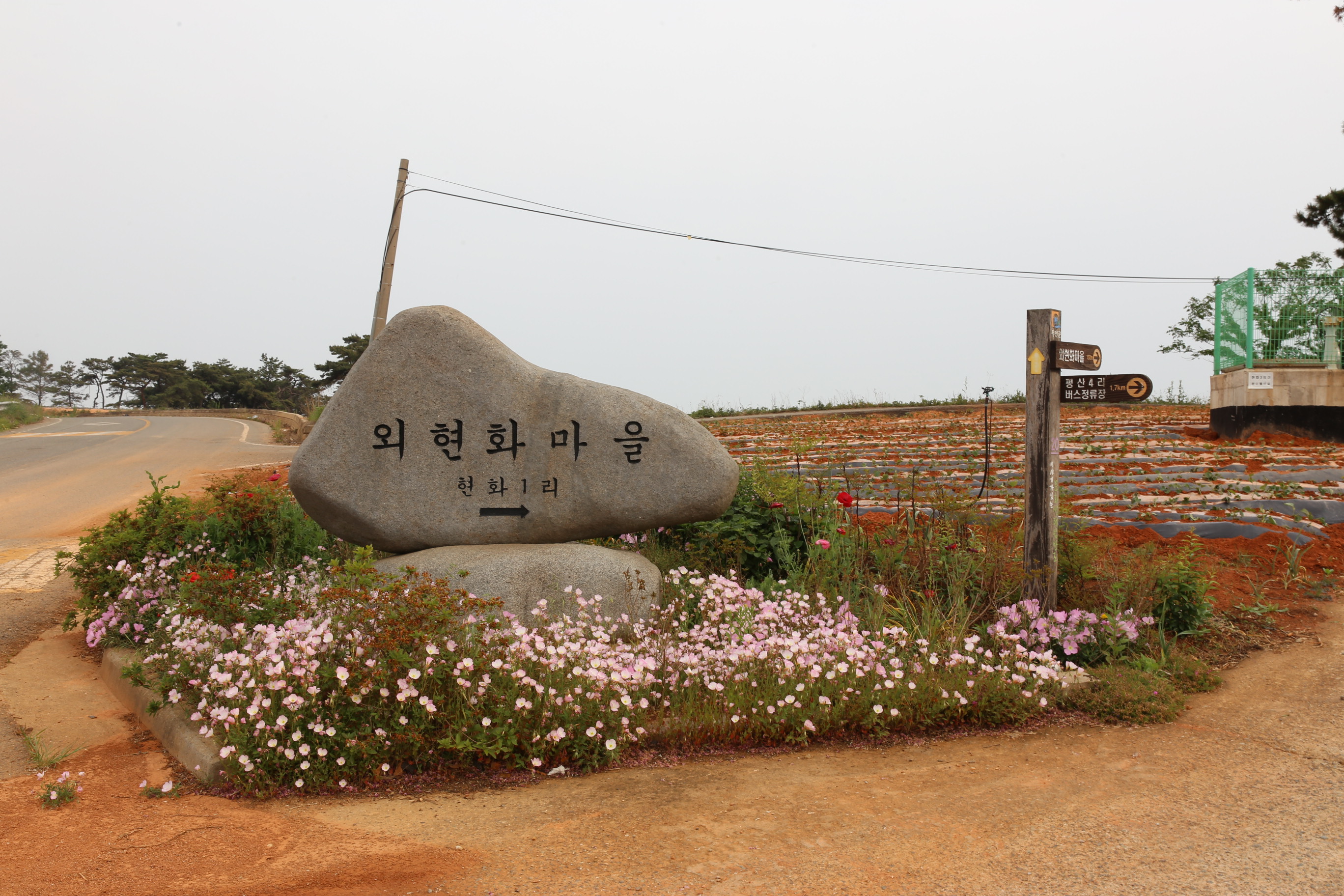 *도로에서 외현화 마을 표지석 통과.