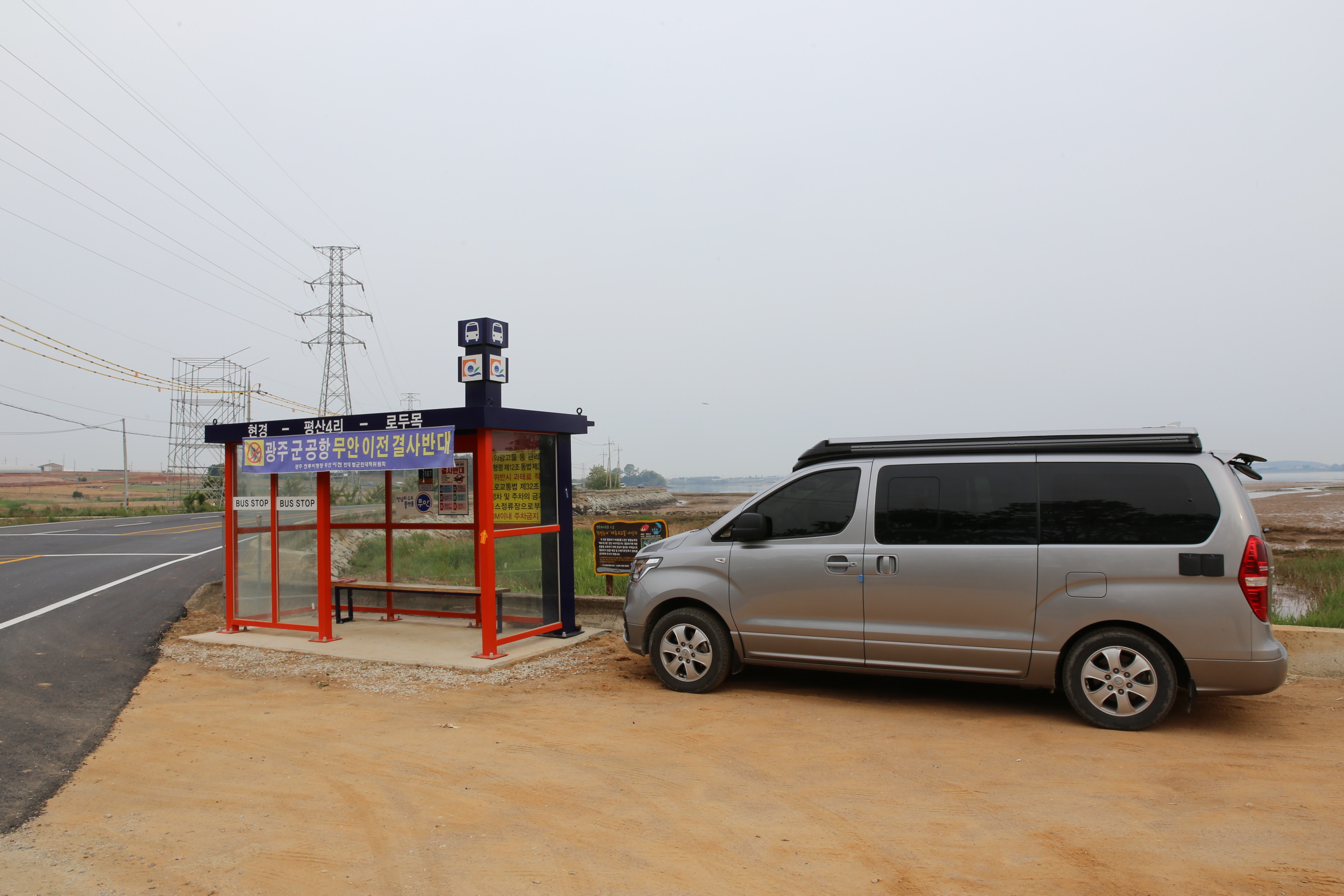*도로를 건너 평산4리 버스정류소에서 좌측 해안가따라 진행.