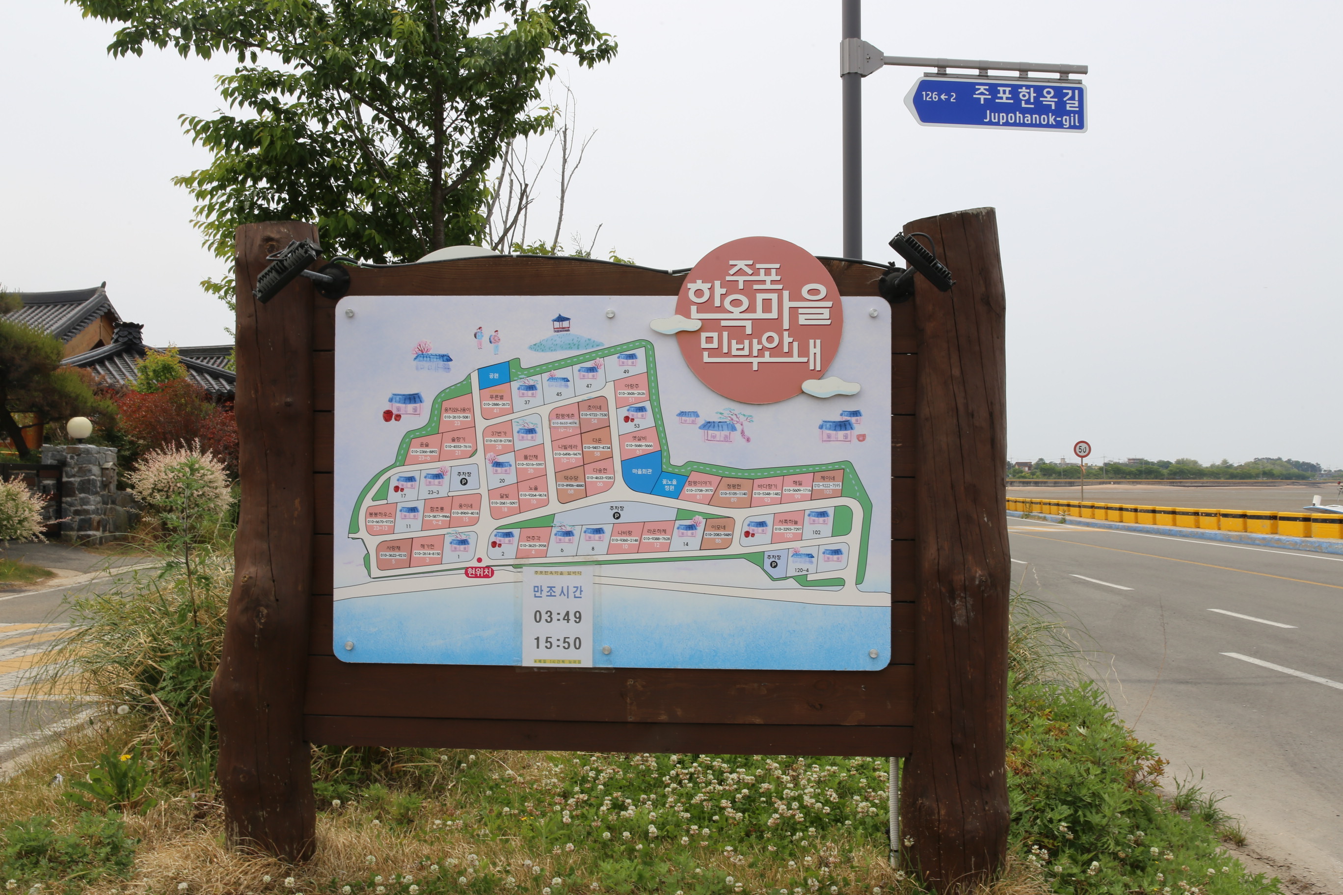 *해안도로따라 지나면 잠시 후 우측으로 주포한옥마을이 보이네요.