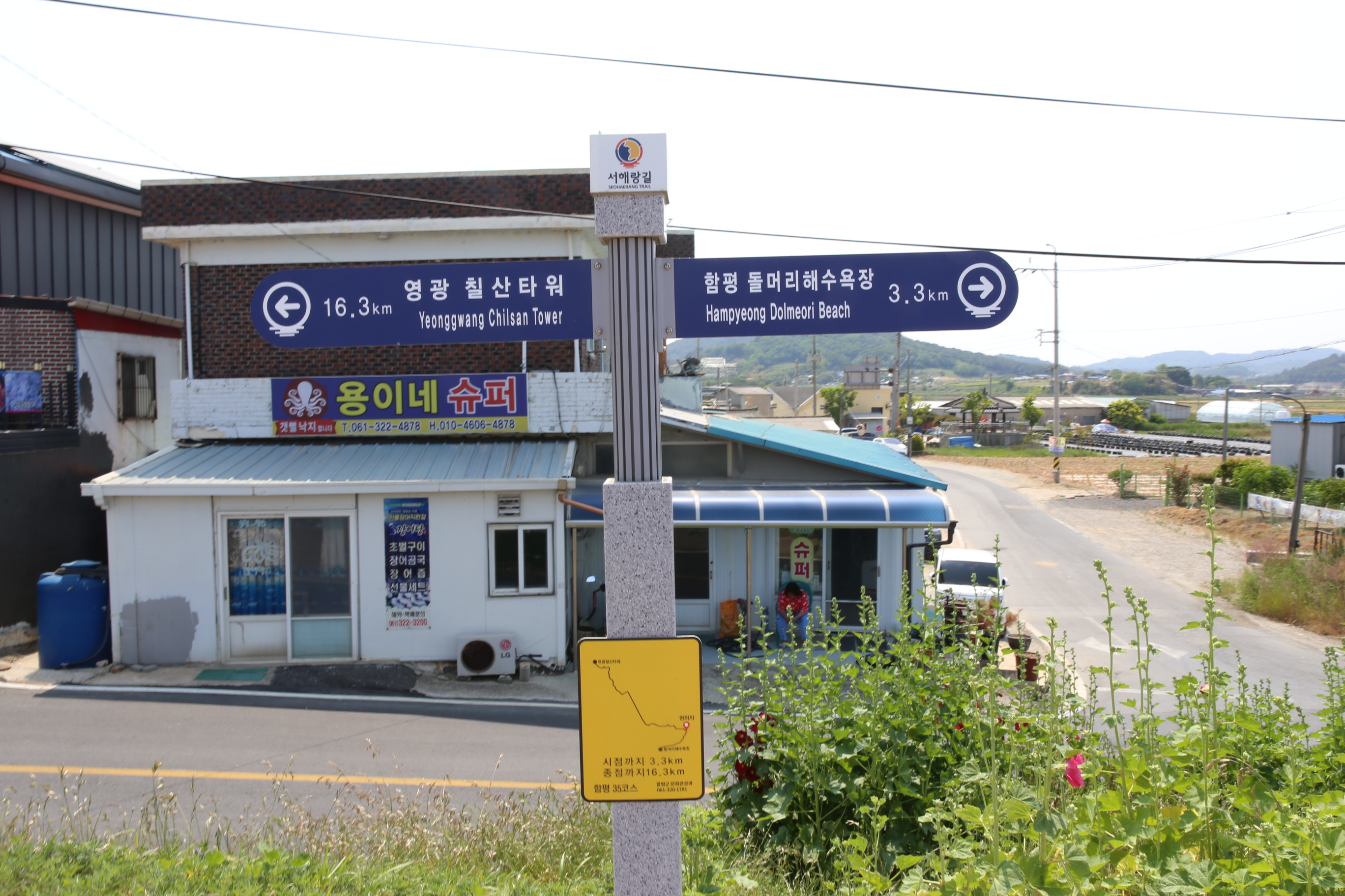 *35코스 출발점에서 3.3km지점 용이네 수퍼앞 도착.