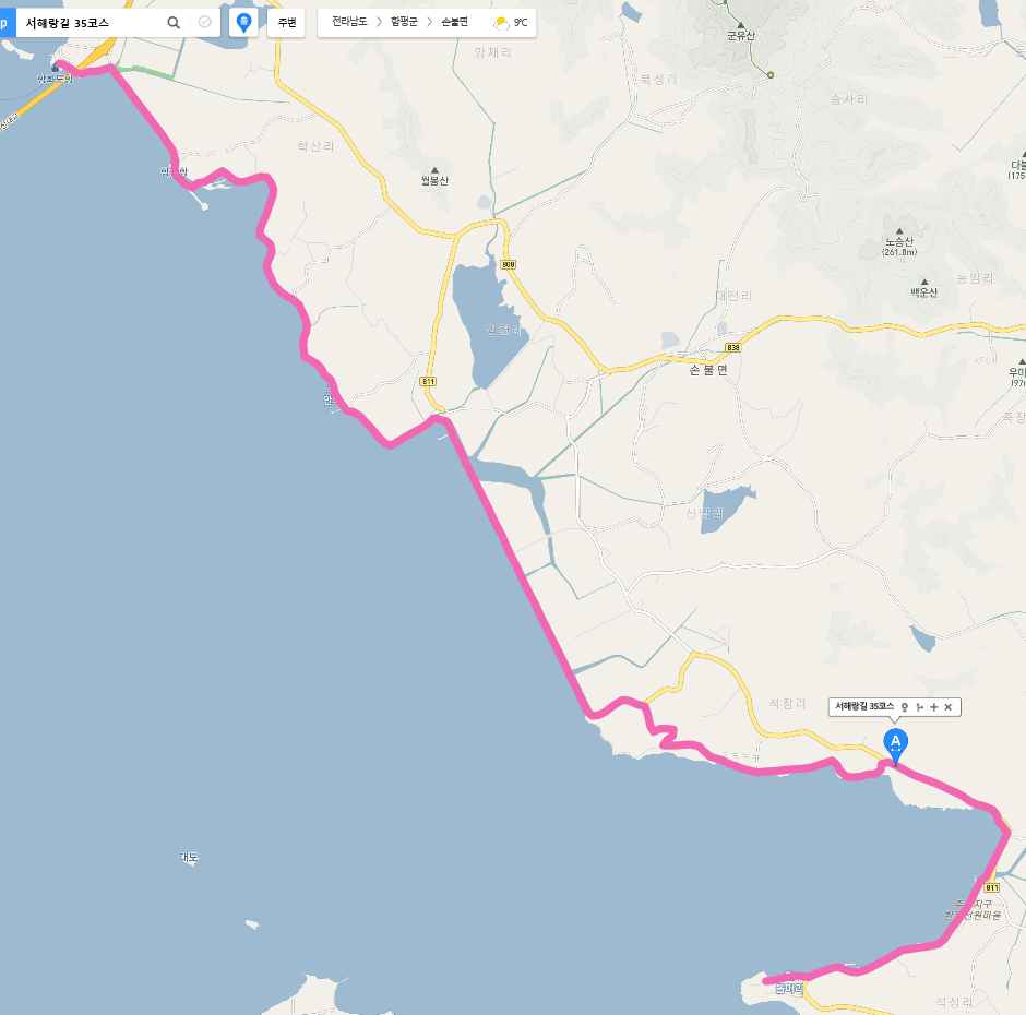 *삼거리에서 함평만 해안도로 방향으로 진행.