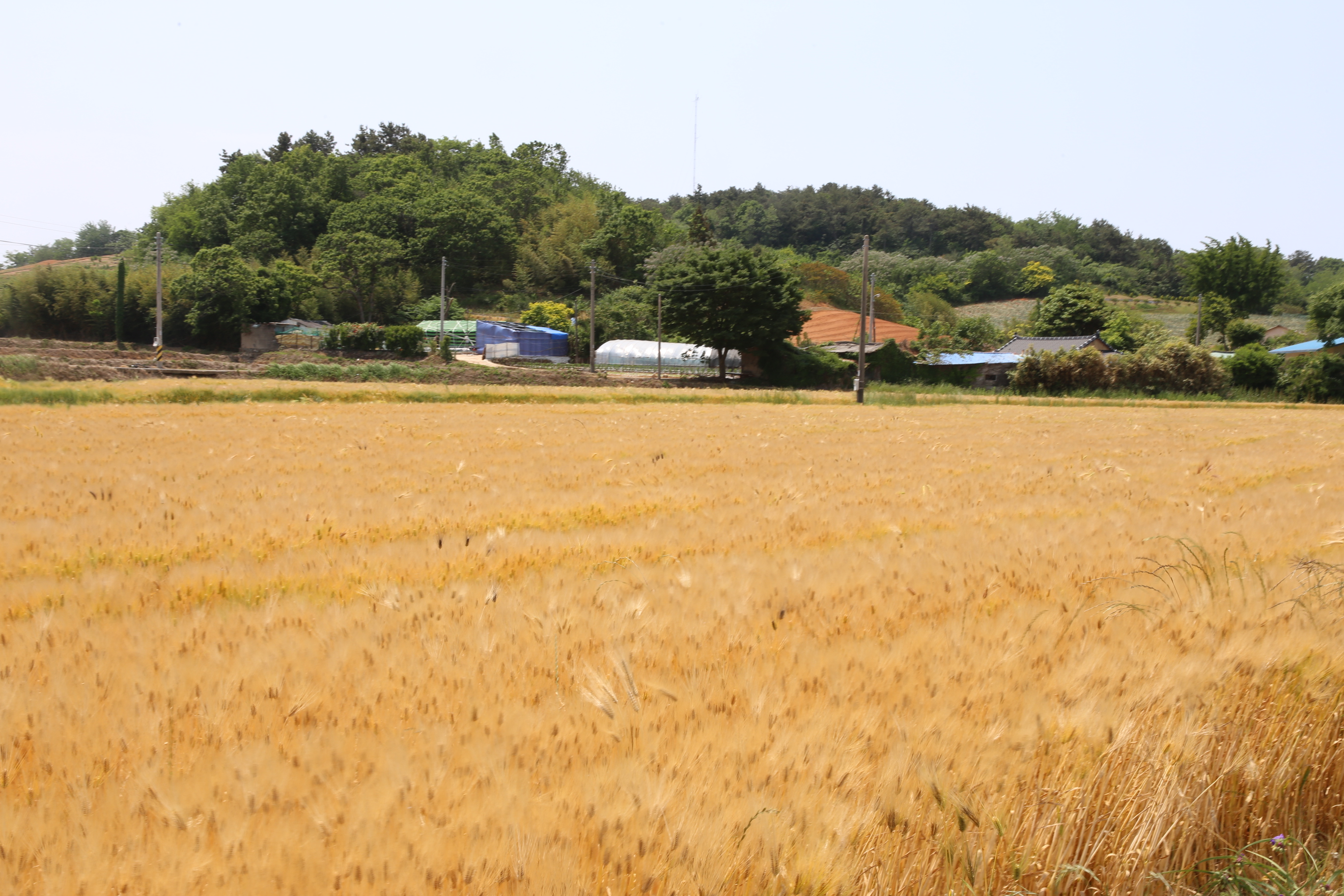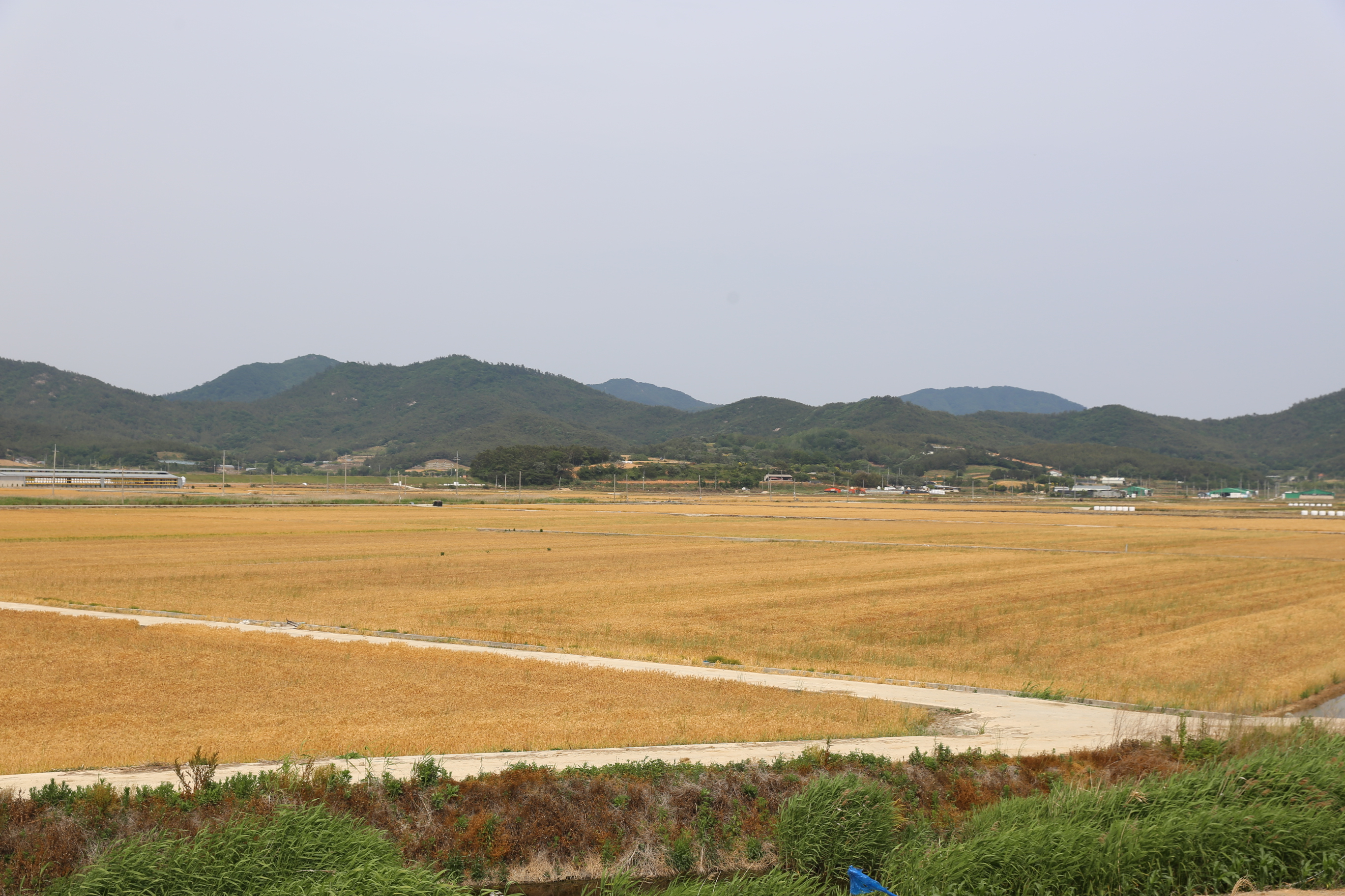 *방조제길에서 바라 본 우측으로 함편들판에는 보리가 황금색을 보이고 있네요.