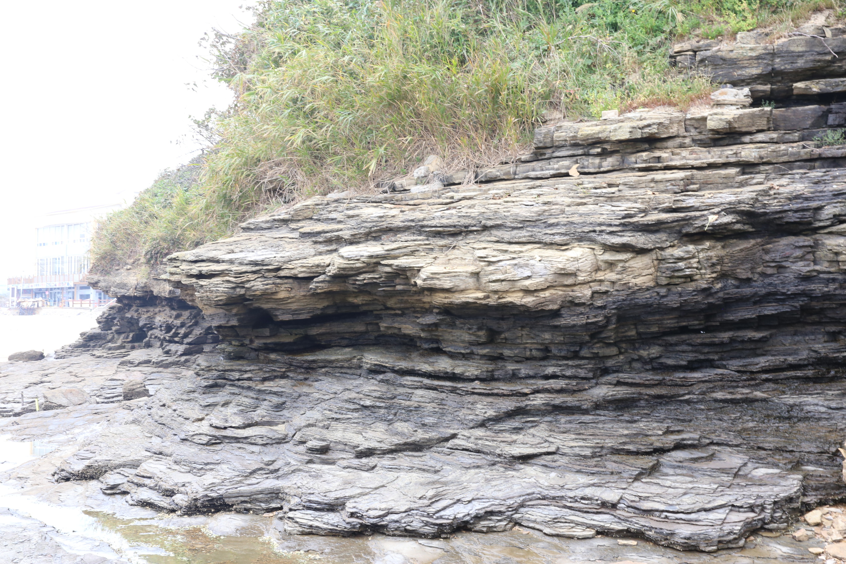 죽막동 해안을 따라서 규소가 많은 혼펠스 층이 퇴적암체에 협재되어 있는데, 이는 퇴적암이 형성되는 중에도 화산활동이 있었음을 말해준다.