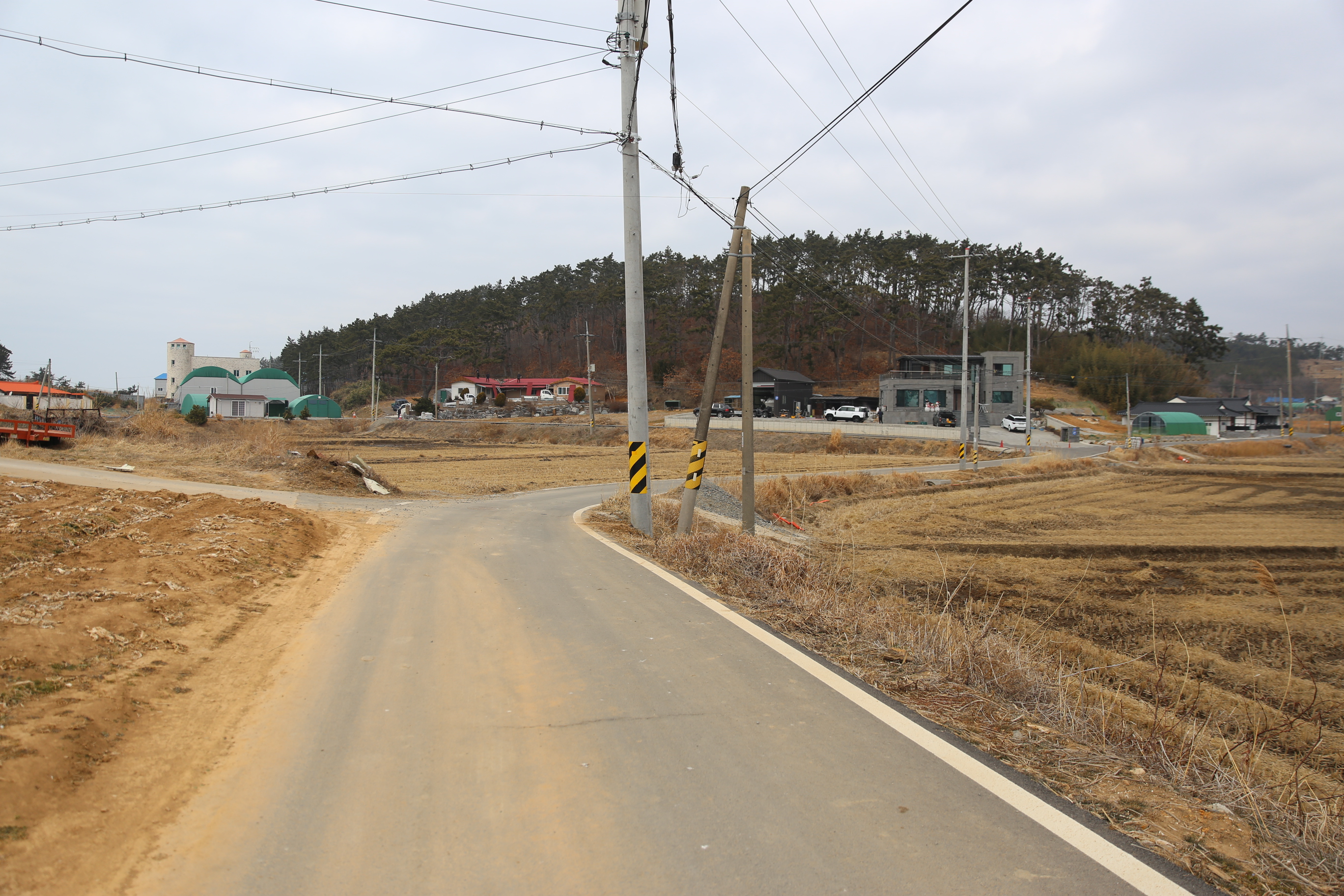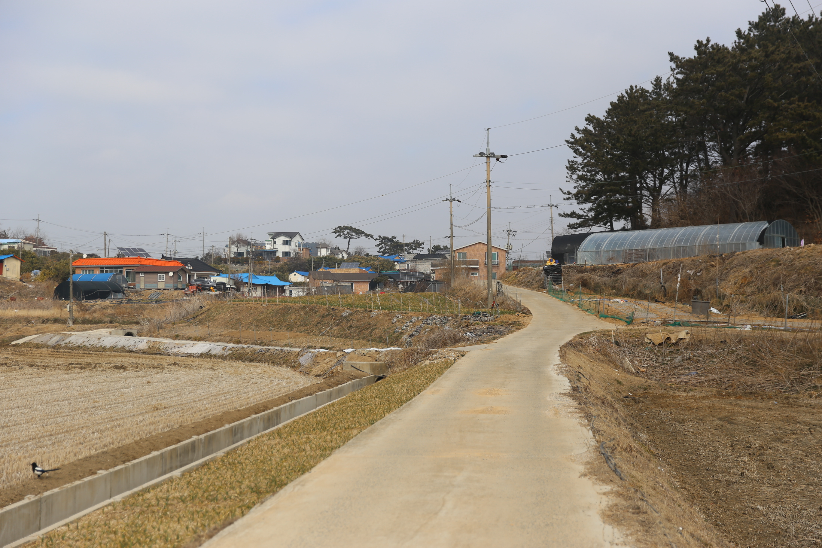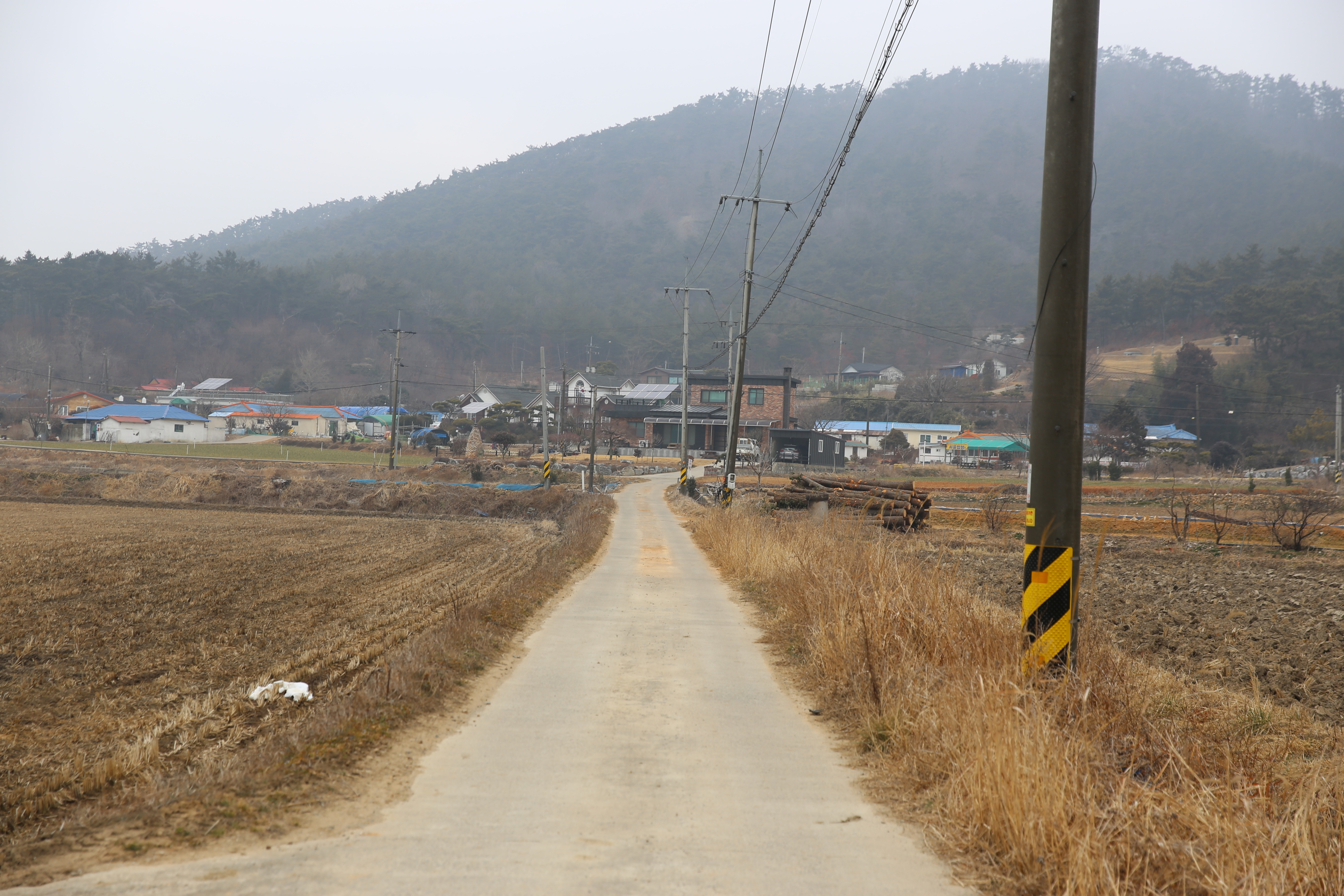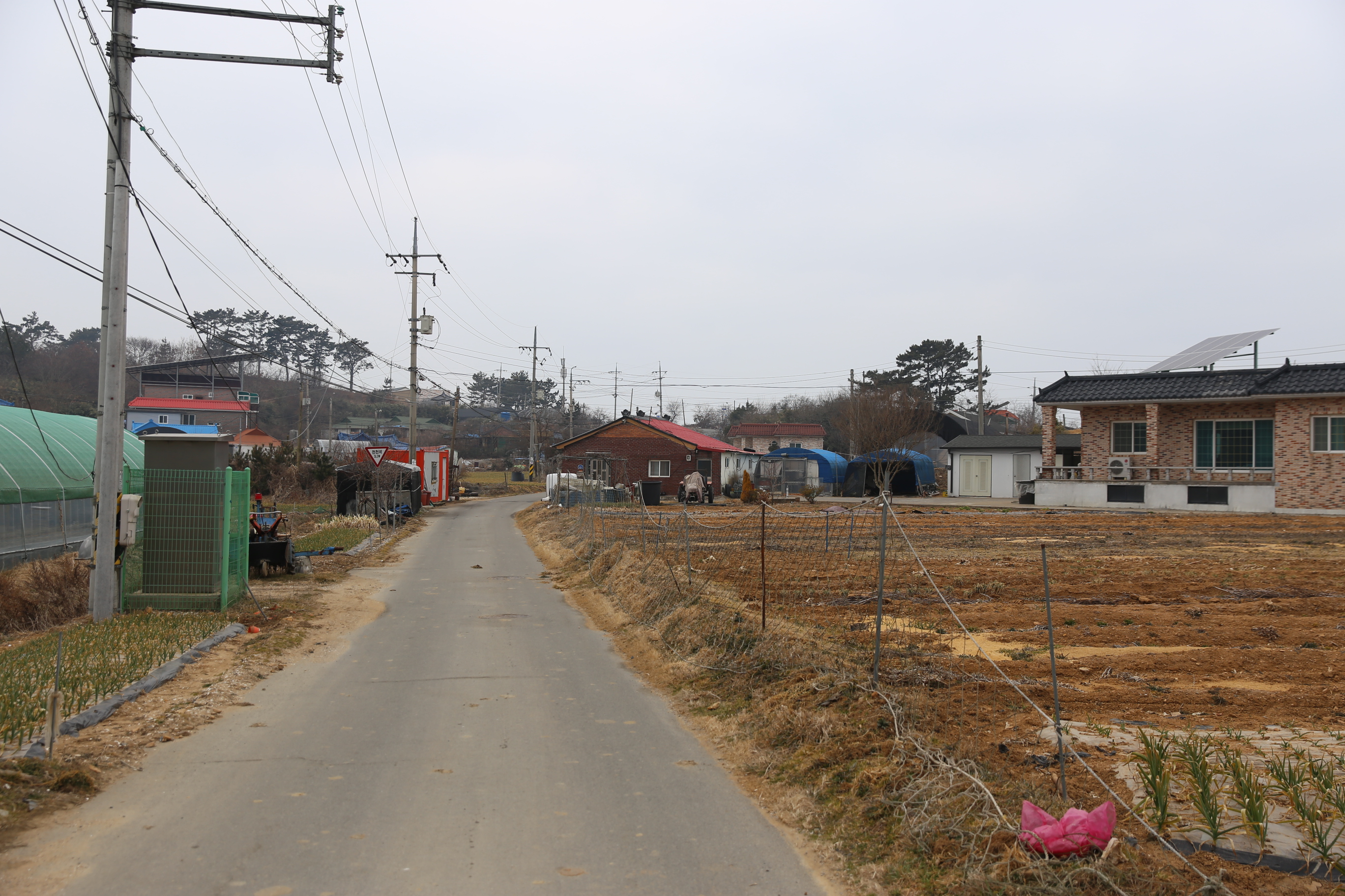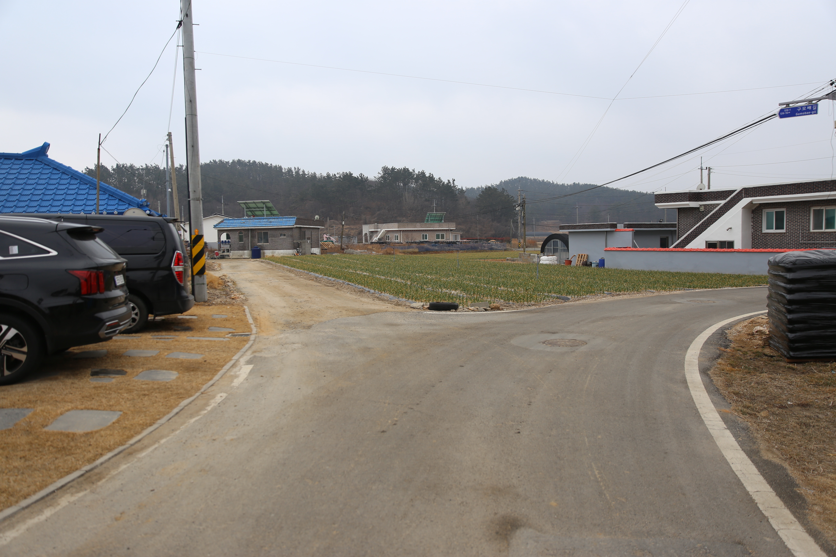 *우측으로 마을이 보이고 시골길따라 진행.