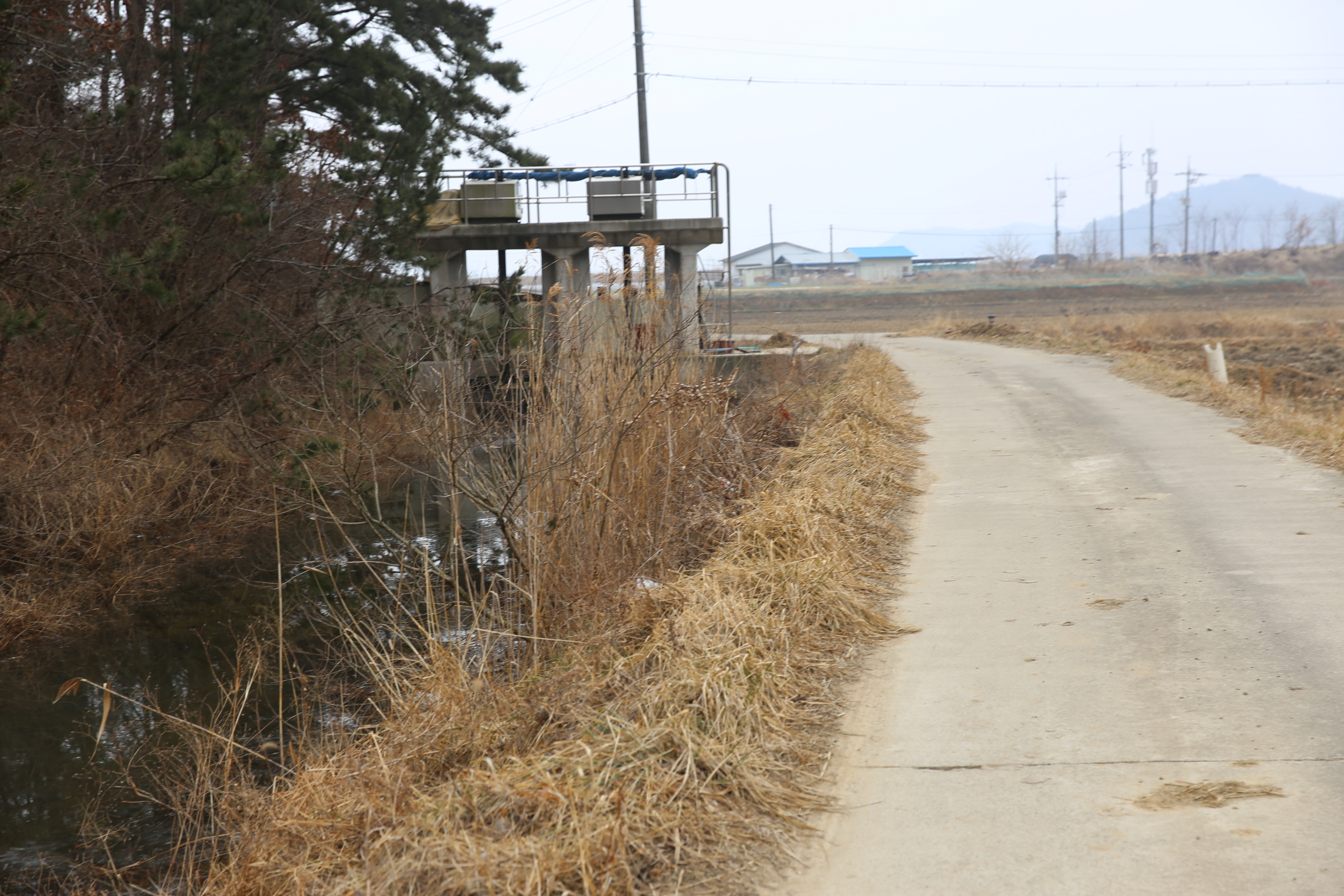 *배수갑문 건너 우측으로 농로길 진행.