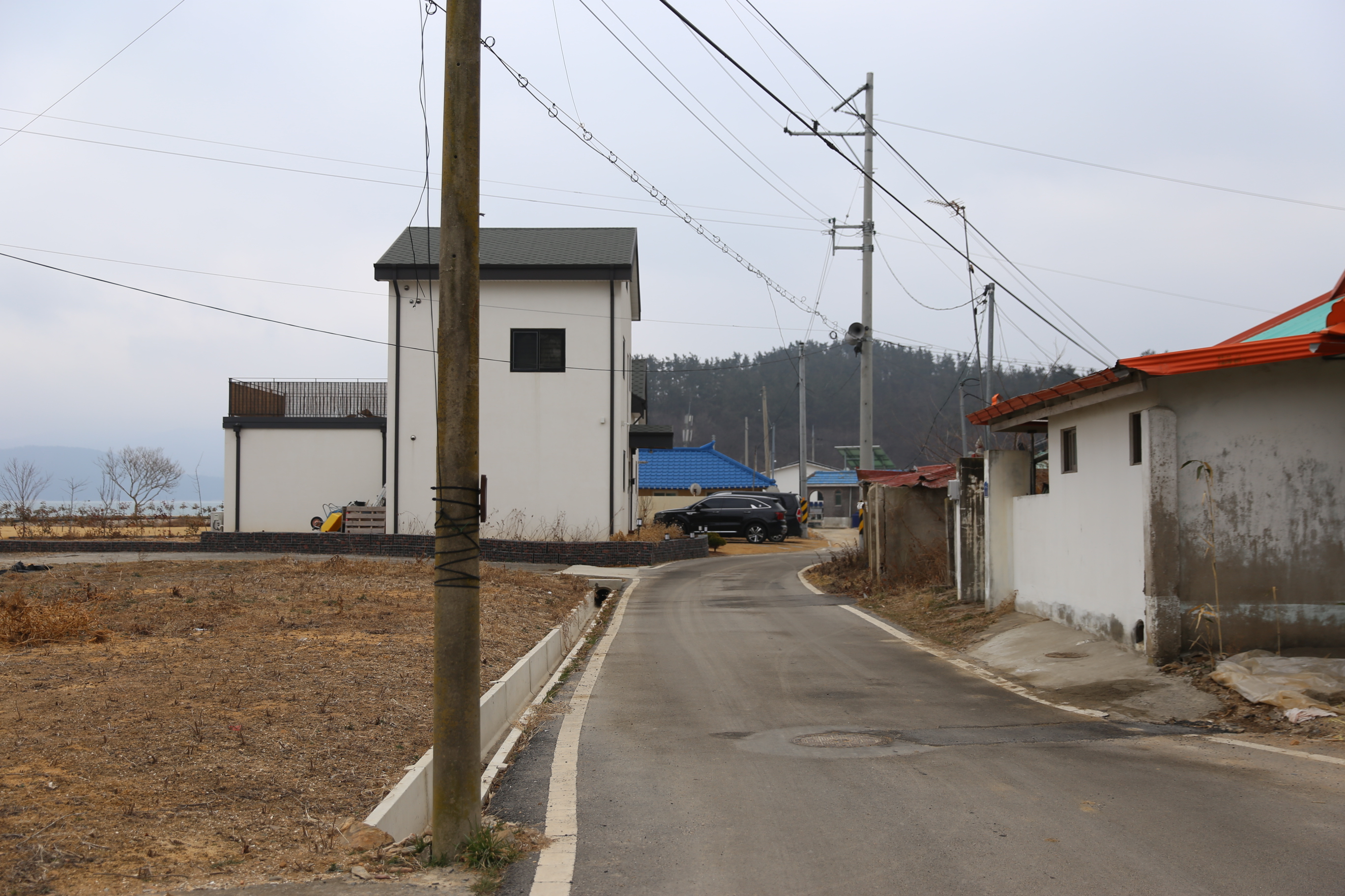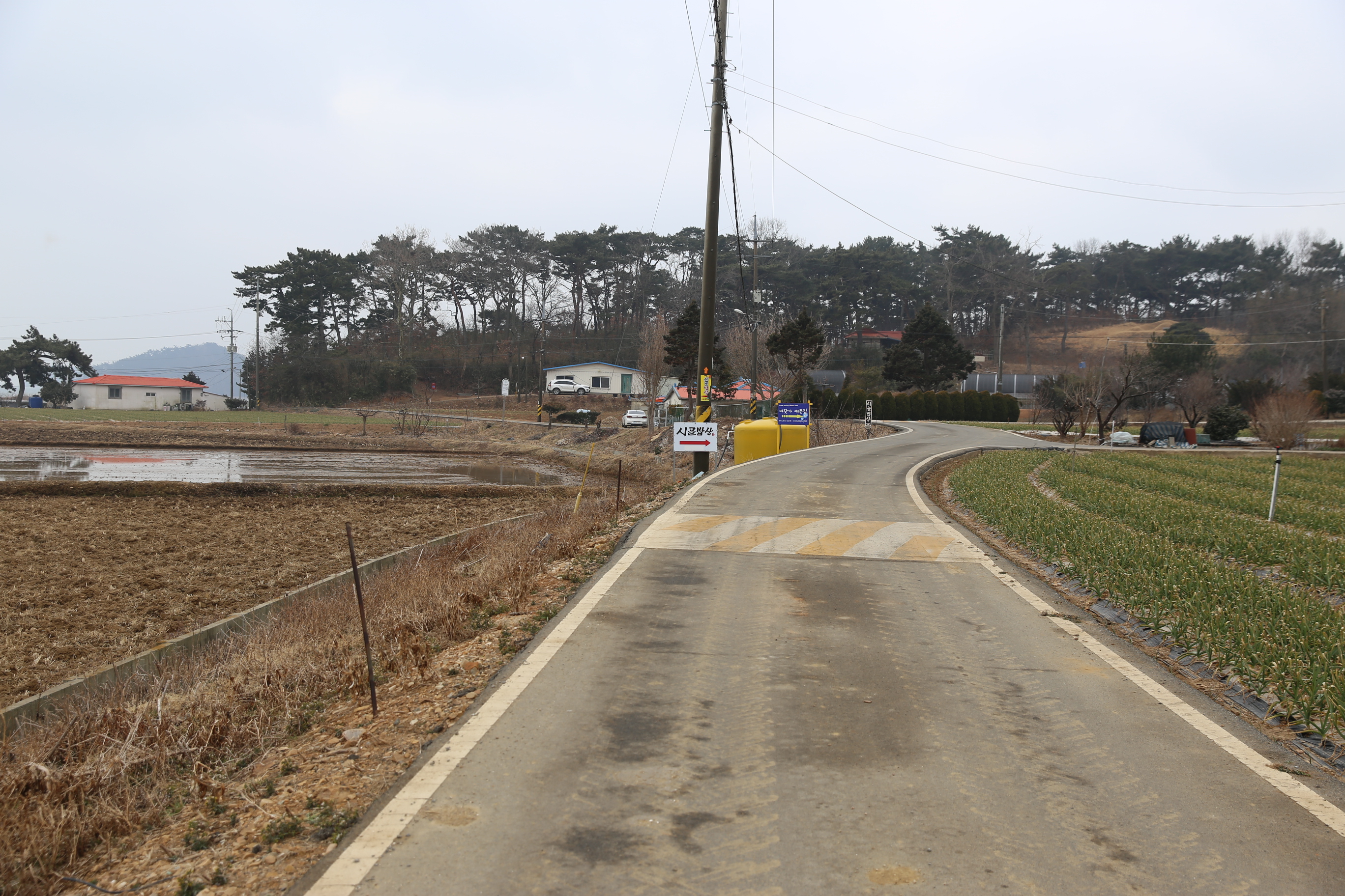 *배수갑문앞에서 우측으로 마을 방향으로 진행.