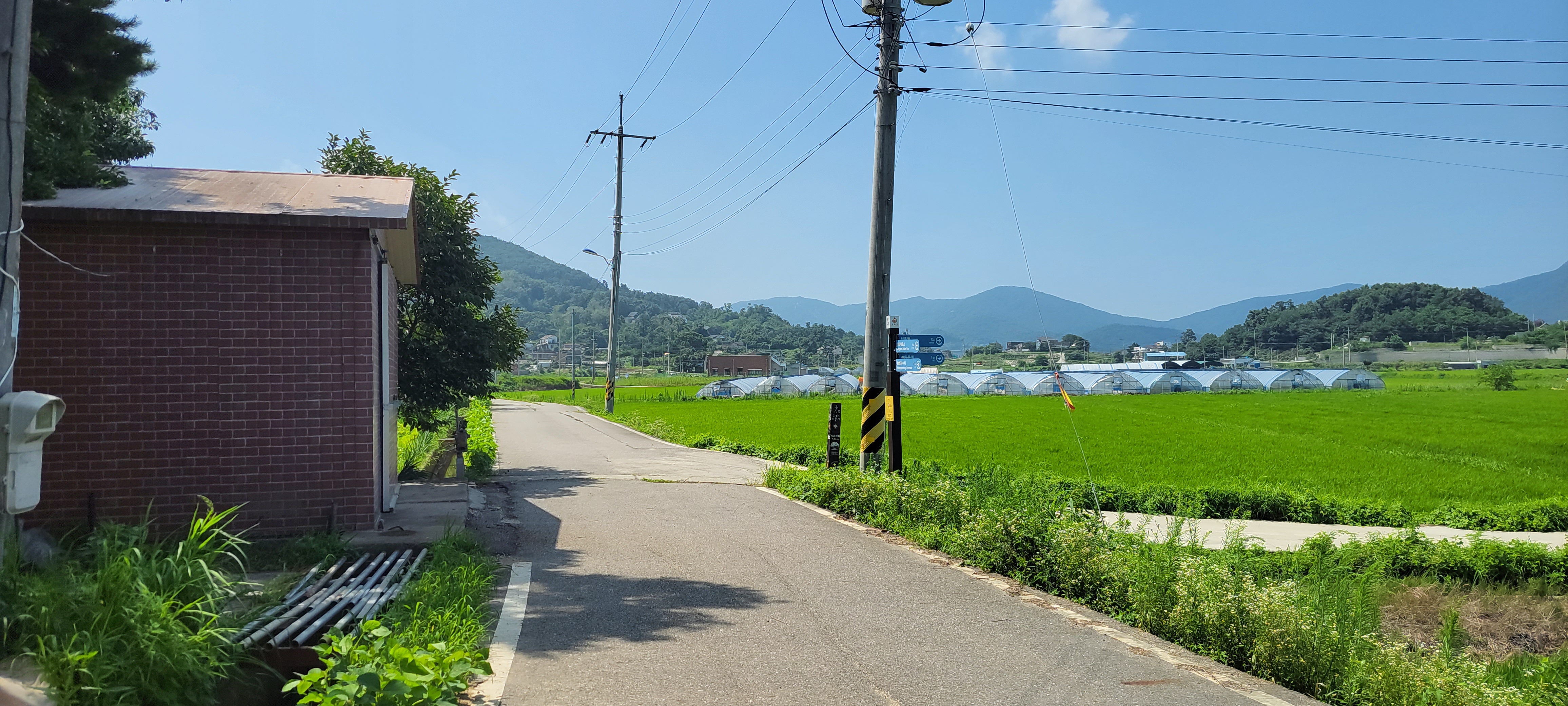 *해안가 둑방길 진행이 어려워 농로길 진행 7월말의 폭염에 시멘트길 걷기가 엄청 힘듭니다.