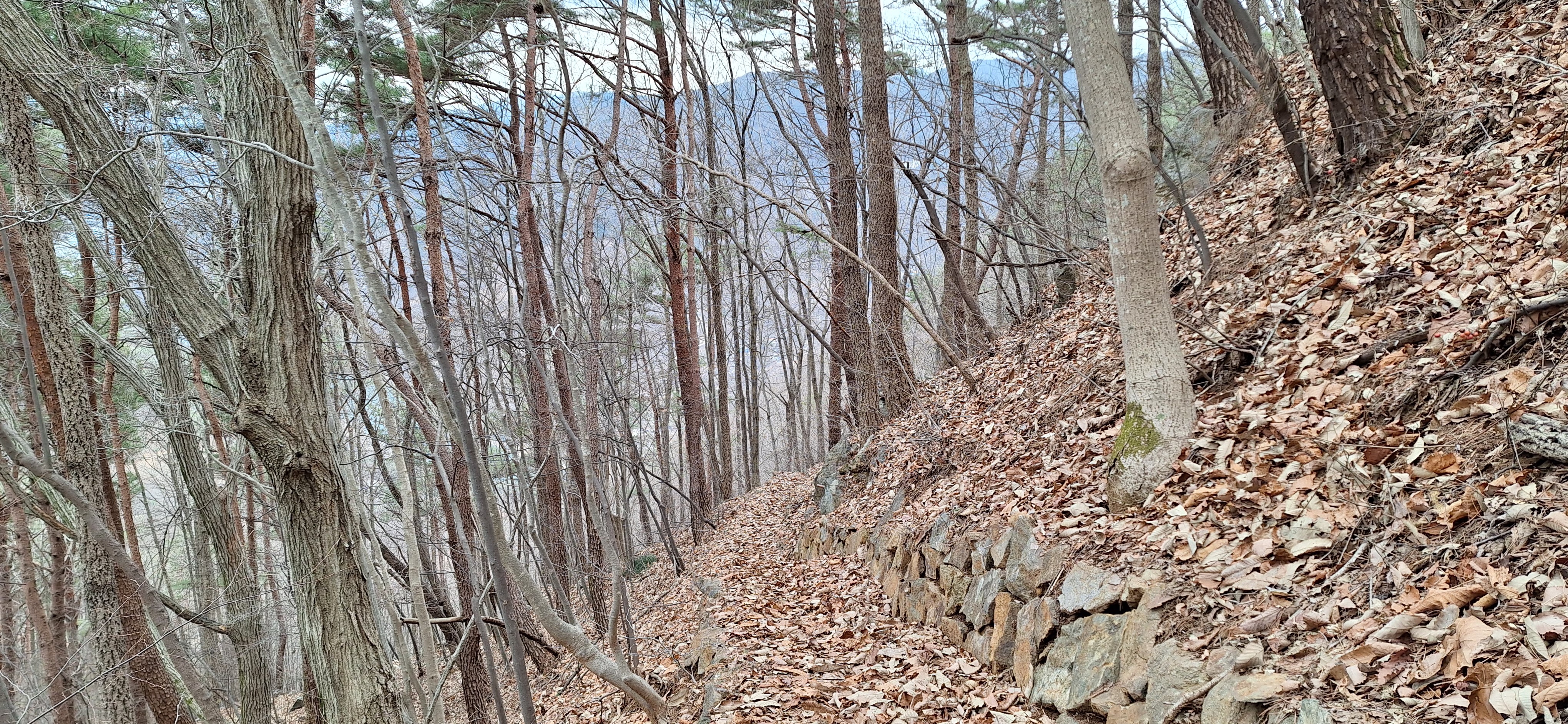 *산허리를 돌아 포근한 낙옆이 발아래 느낌이 좋다.