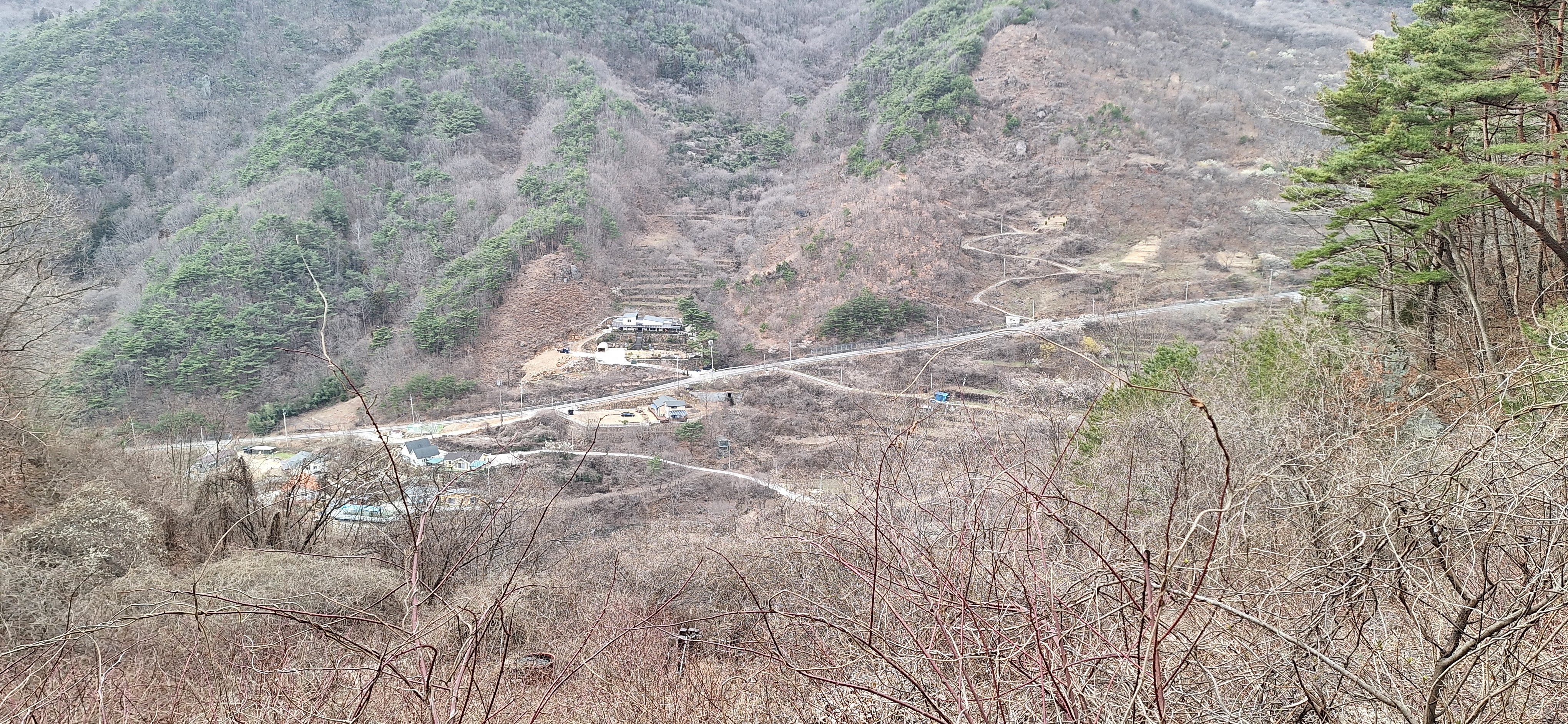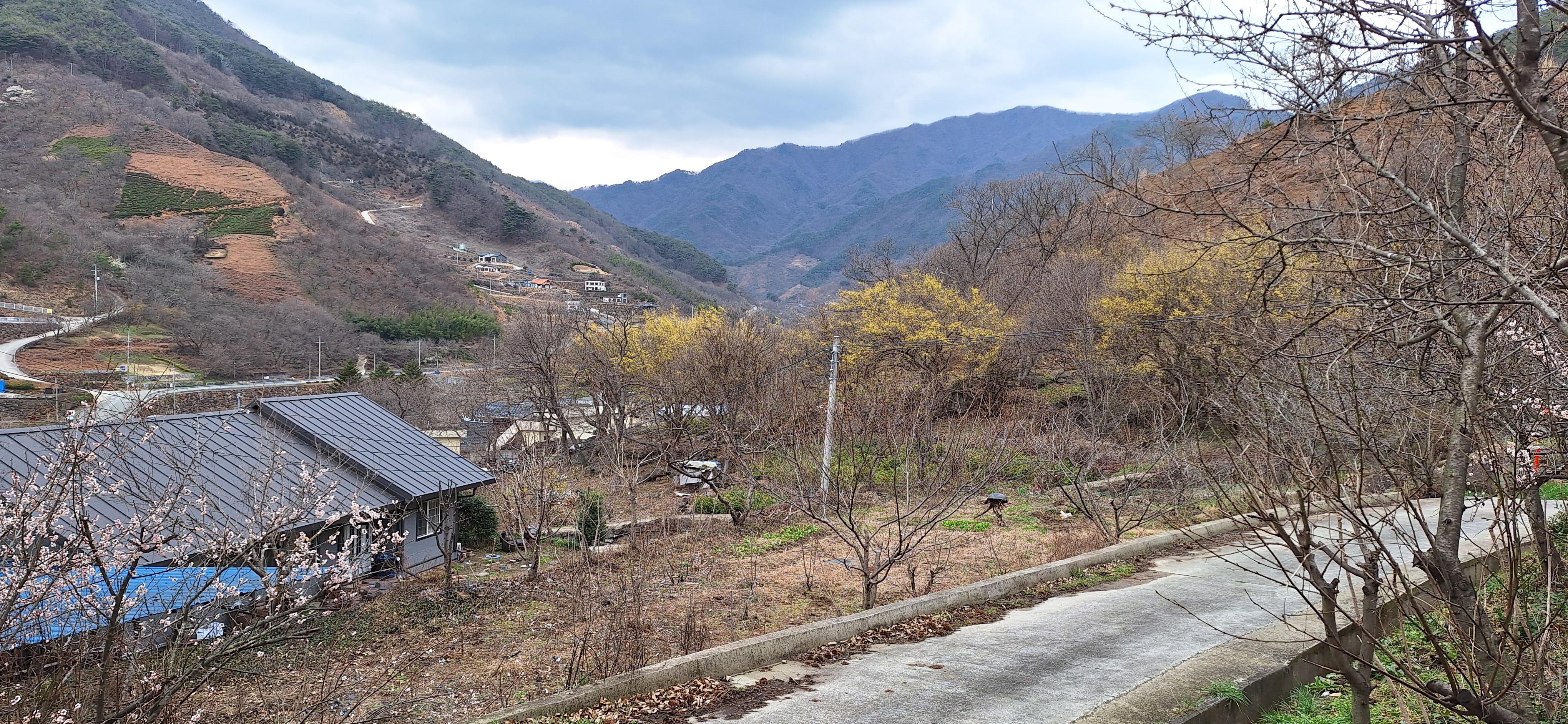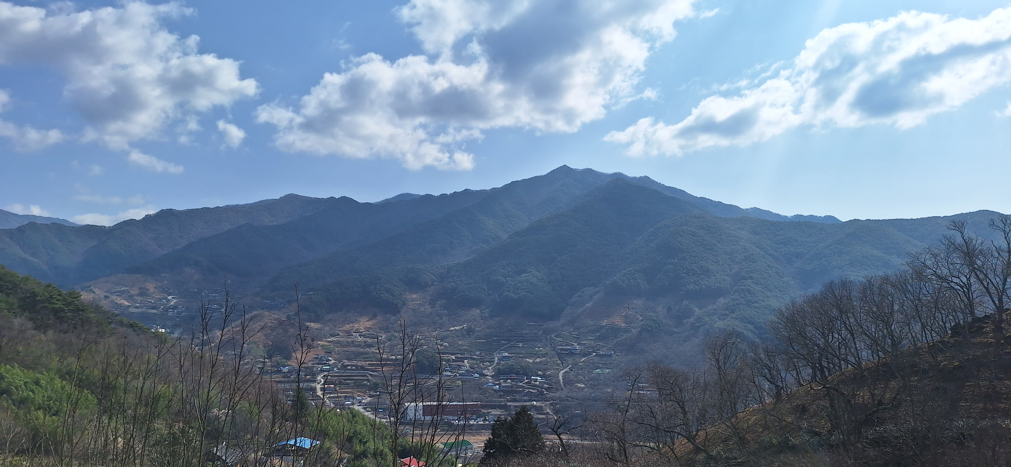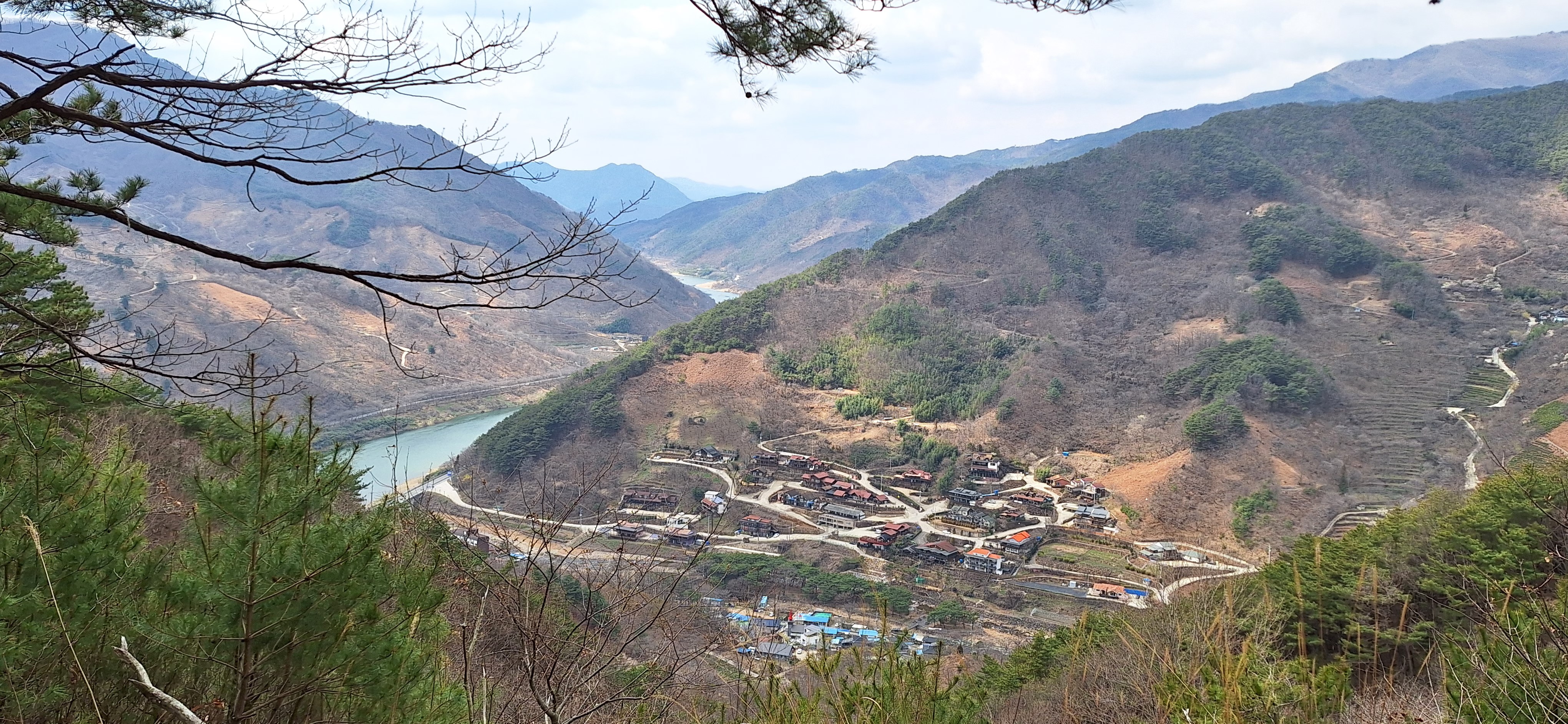 *더디어 앞에 보이는 산촌의 모습.
