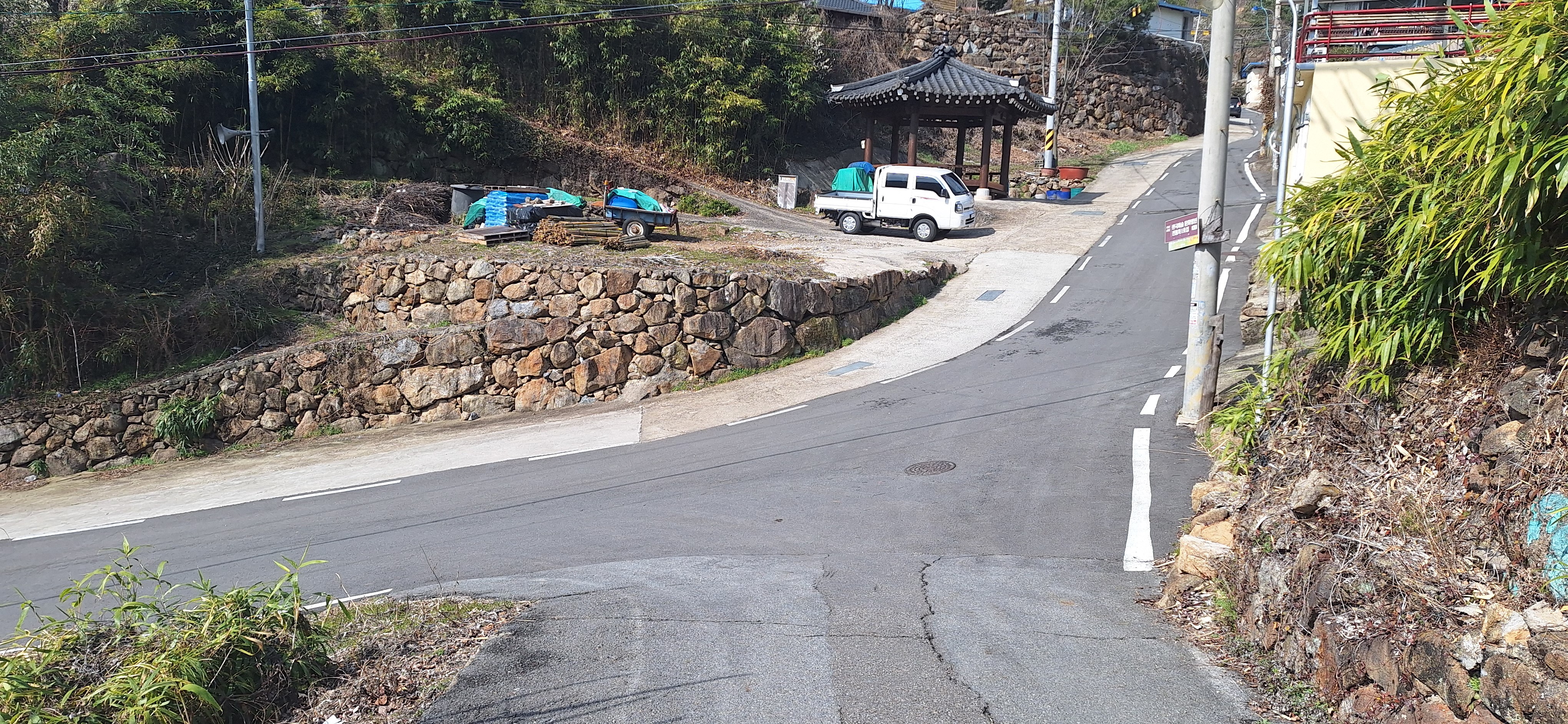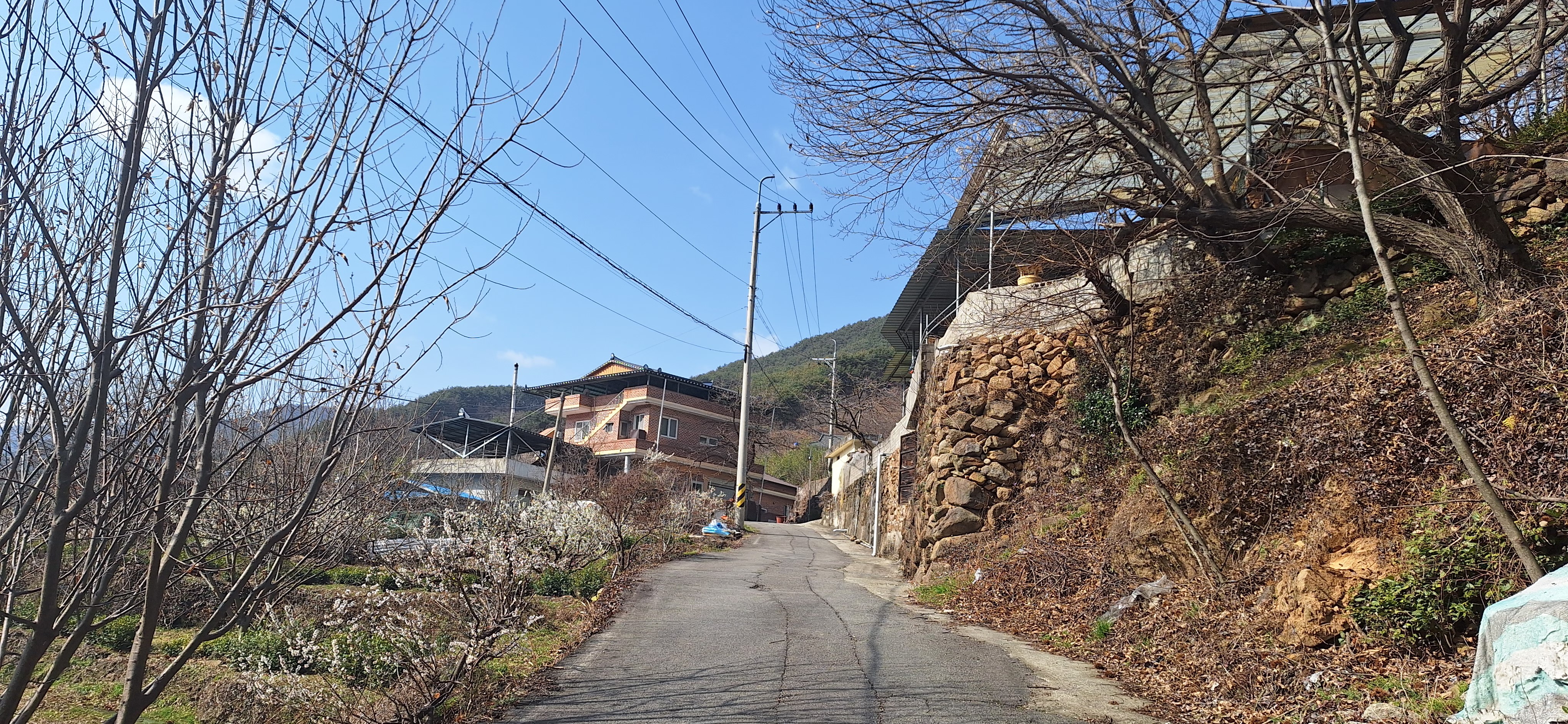 *마을길 갈림길에서 우측으로 경사길따라 진행.