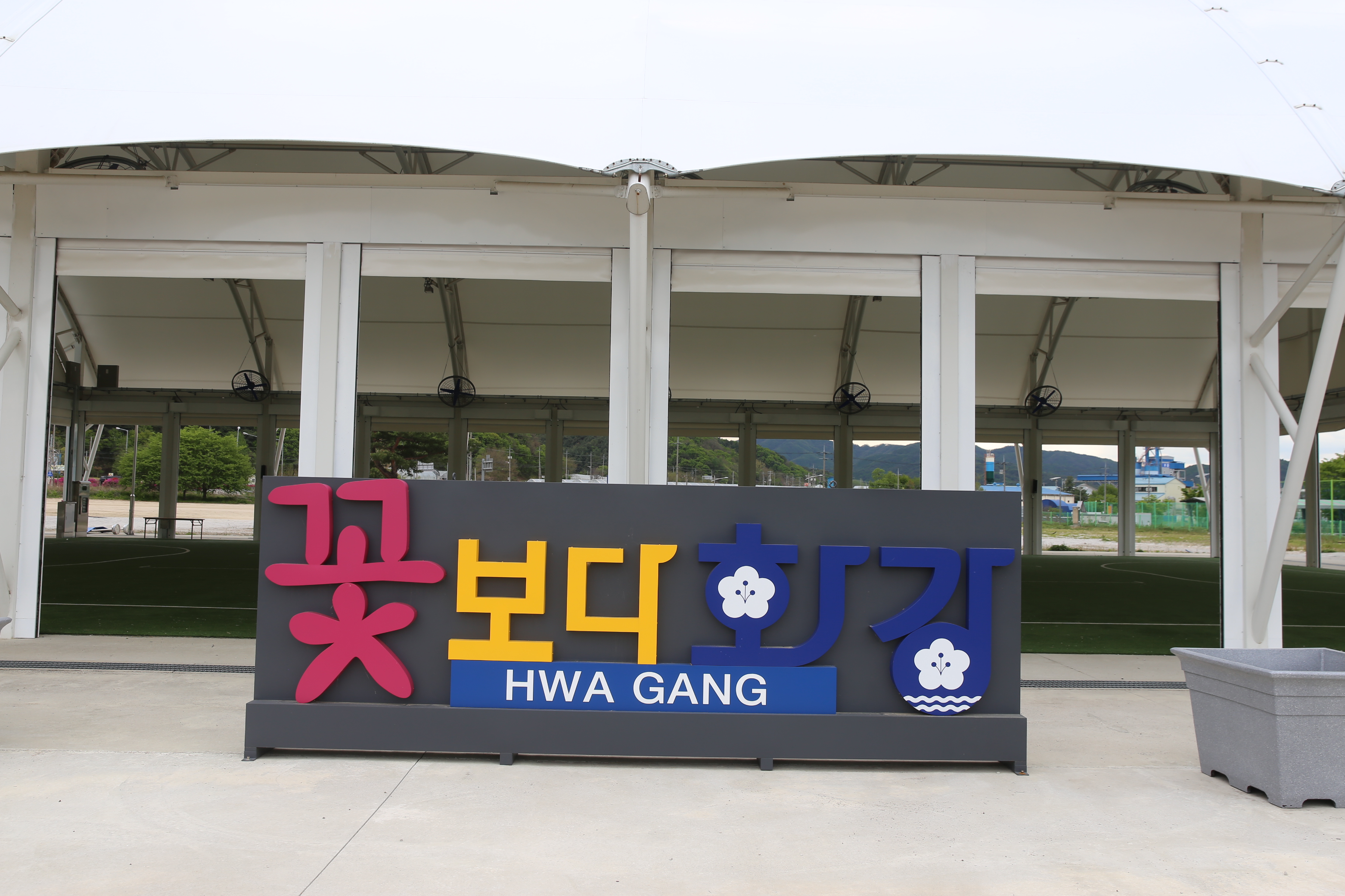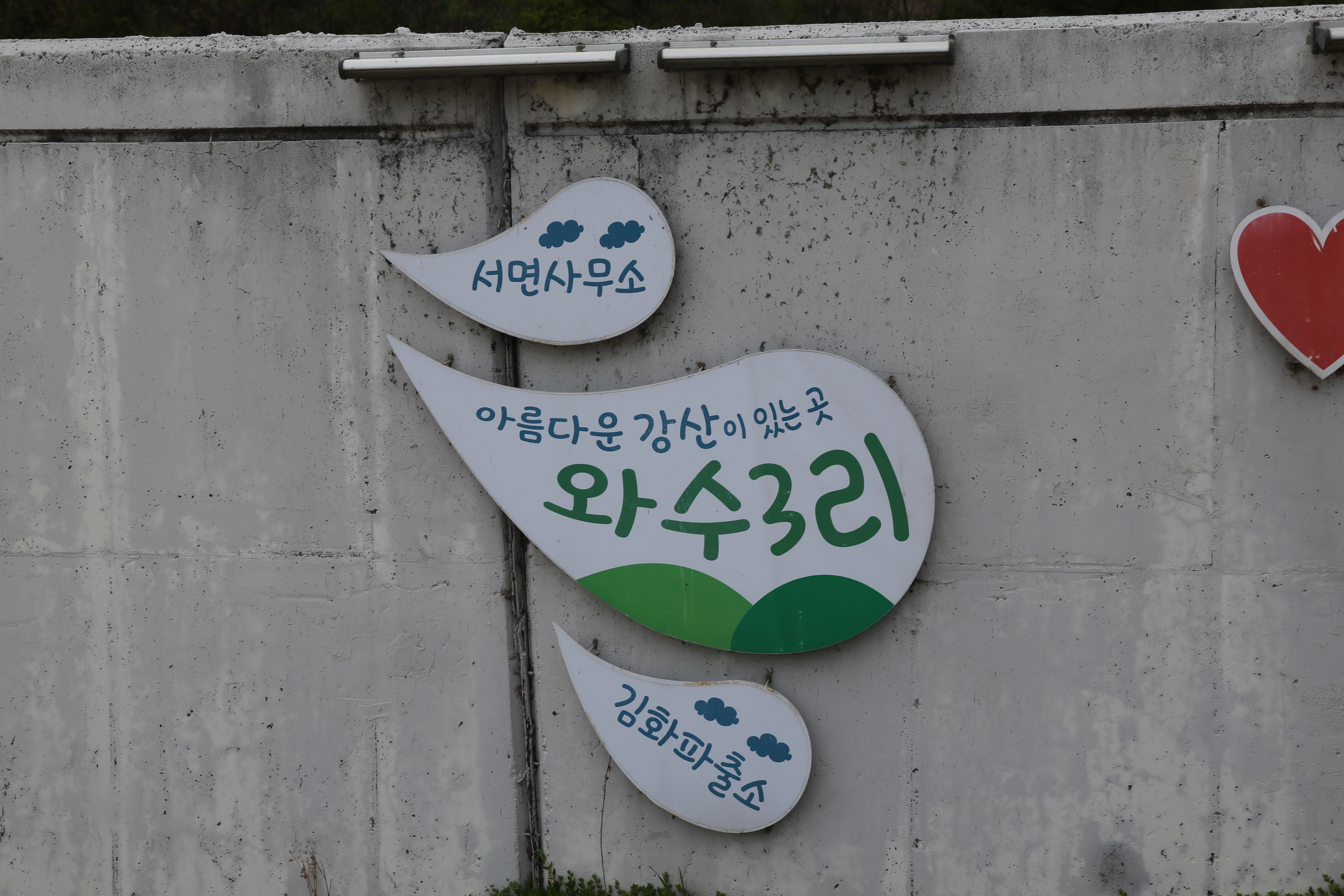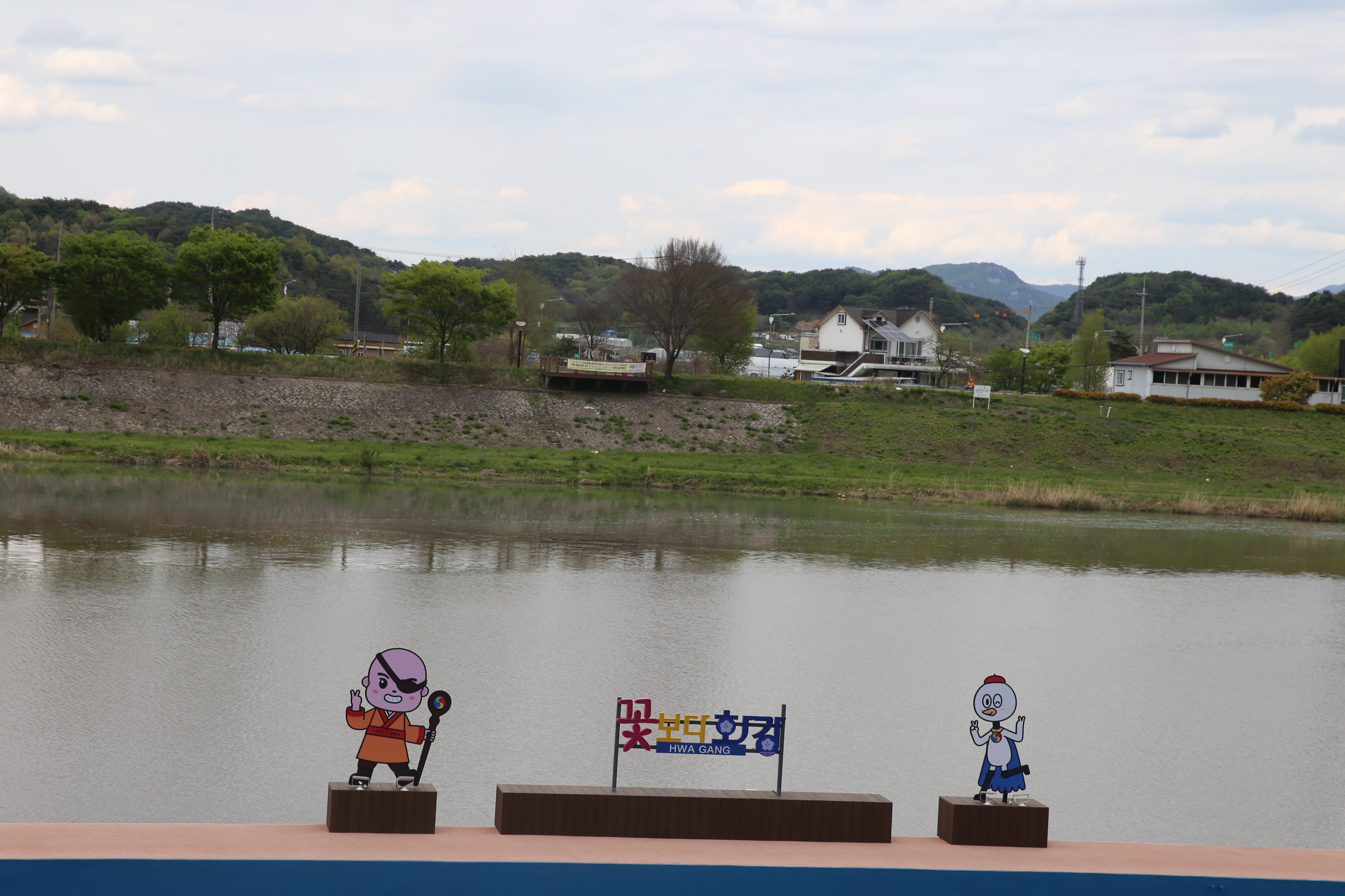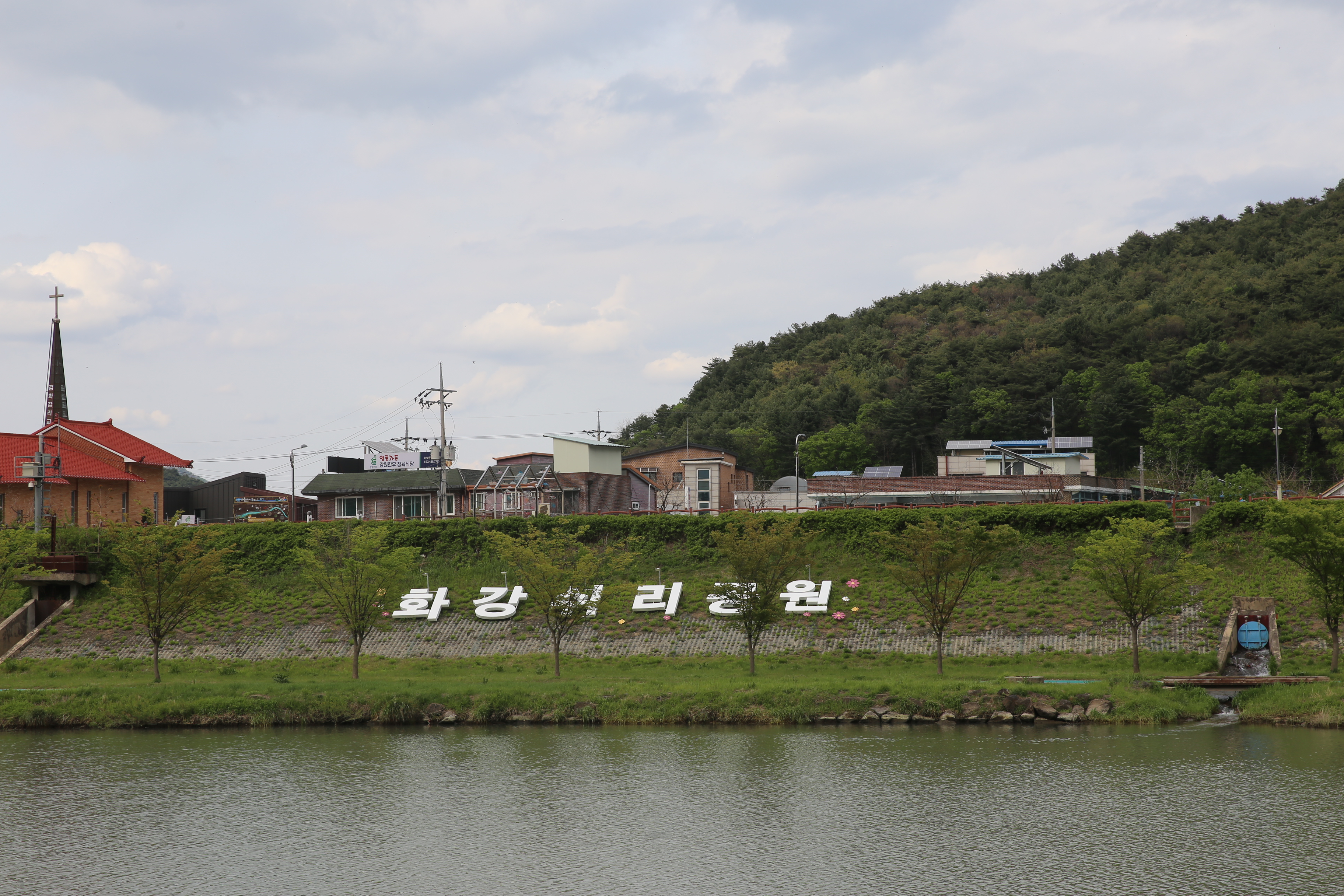 *강 건너편에 여기는 화강 쉬리공원 홍보 글시.
