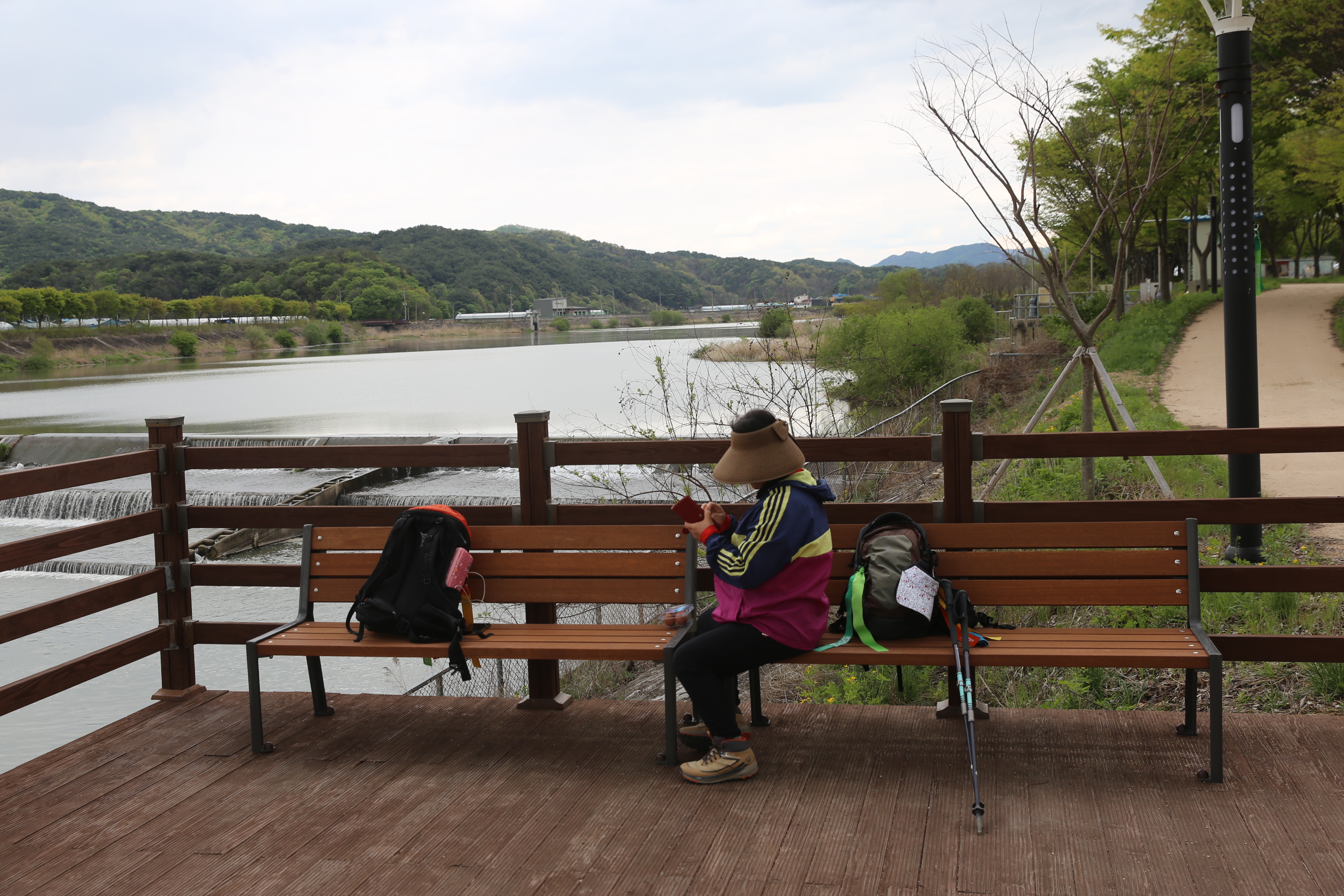 *화강의 보를 바라보면서 쉼터에서 잠시 재충전의 시간을 가져봅니다.