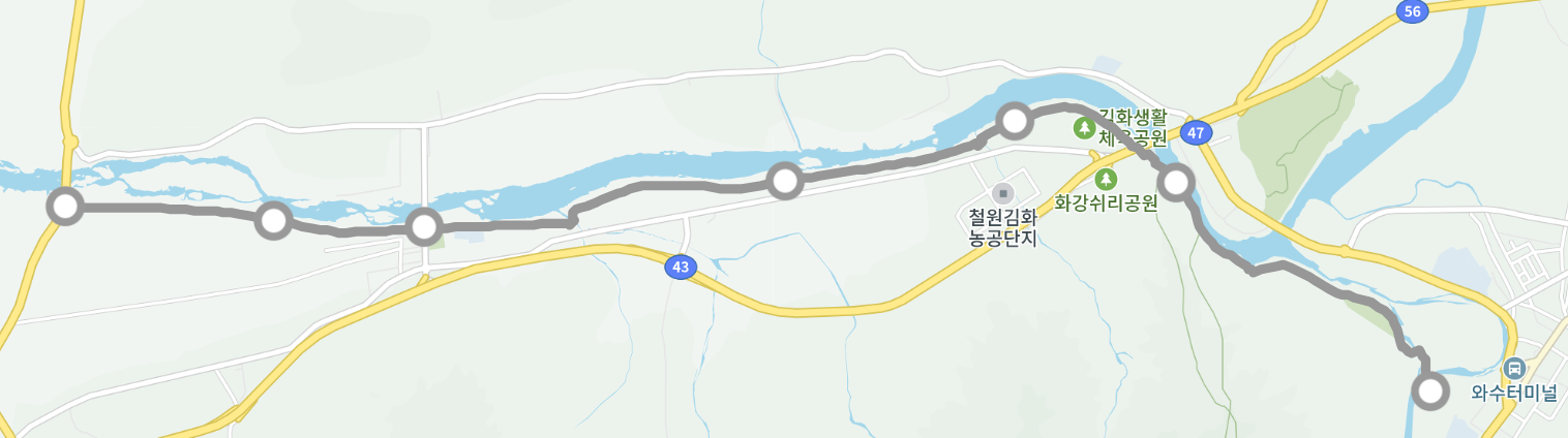 -화강의 강변데크 산책로 장수길을 이용하는 구간이다.
