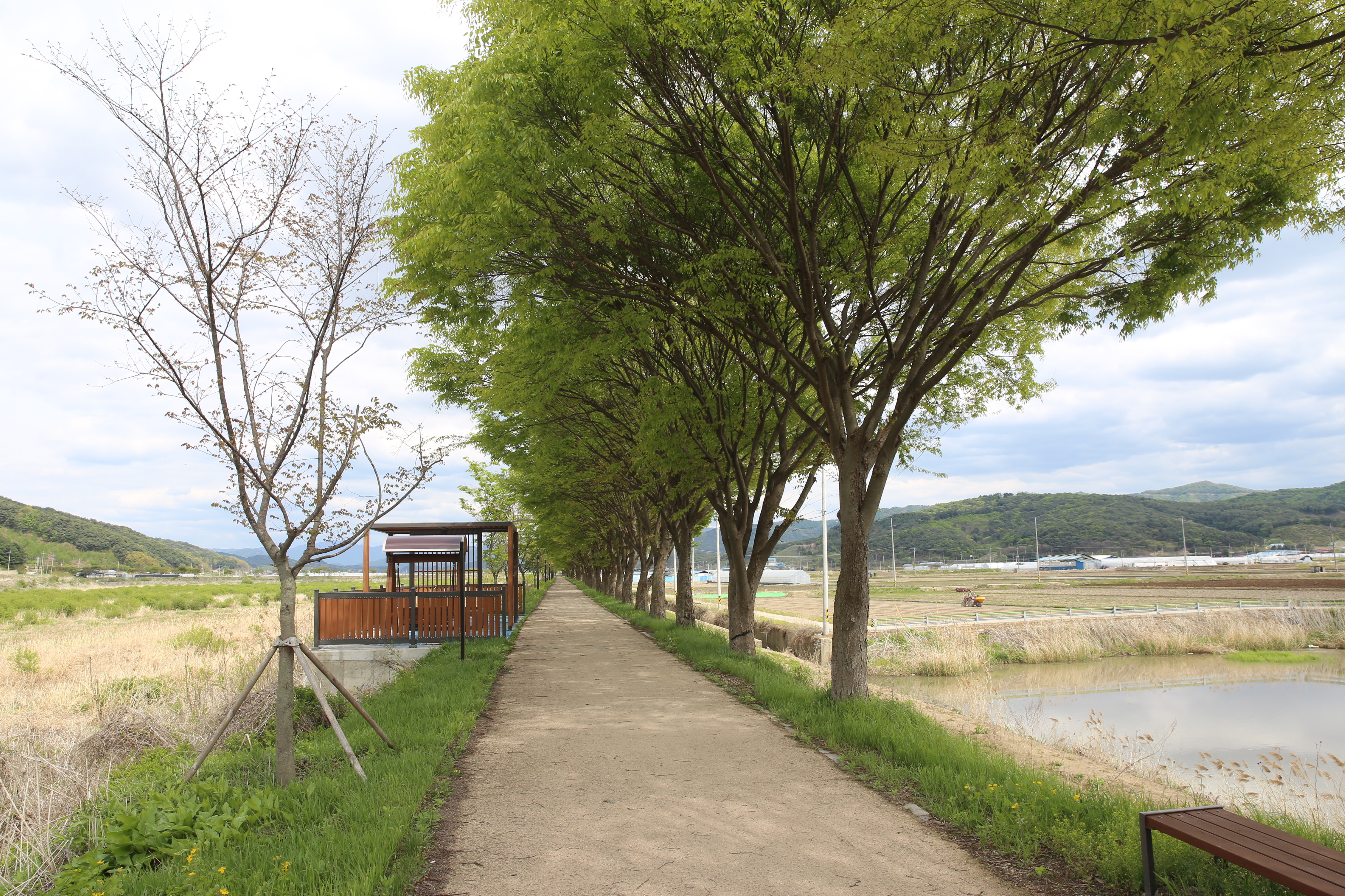 *체욱공원을 지나 작은 하천을 따라 마을길 진행 와수리 방향으로 진행.