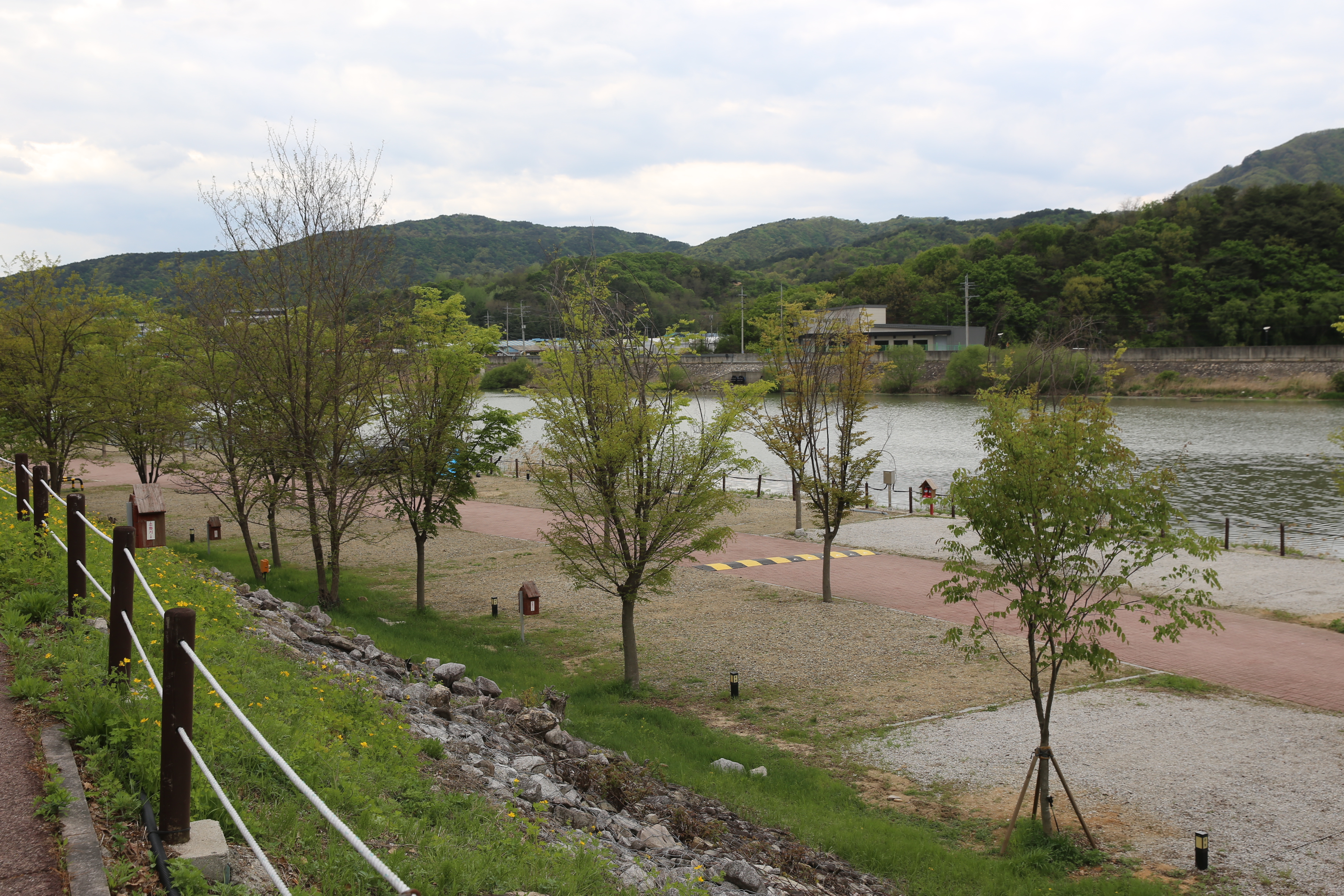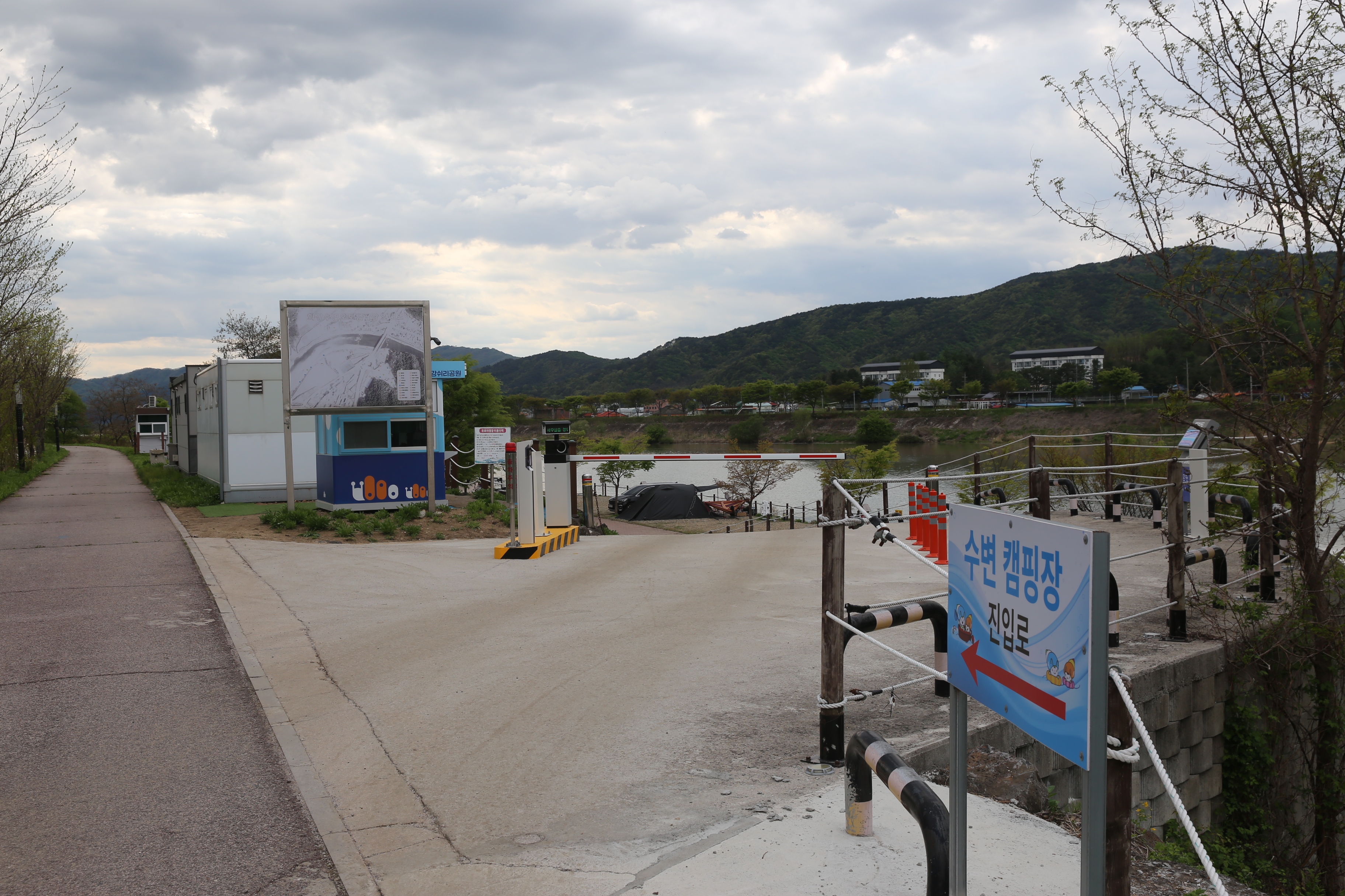 *수변 캠핑장앞을 지나고 있습니다.제법 규모가 큰 캠핑장이 하천변을따라 길게 조성되어 시민들의