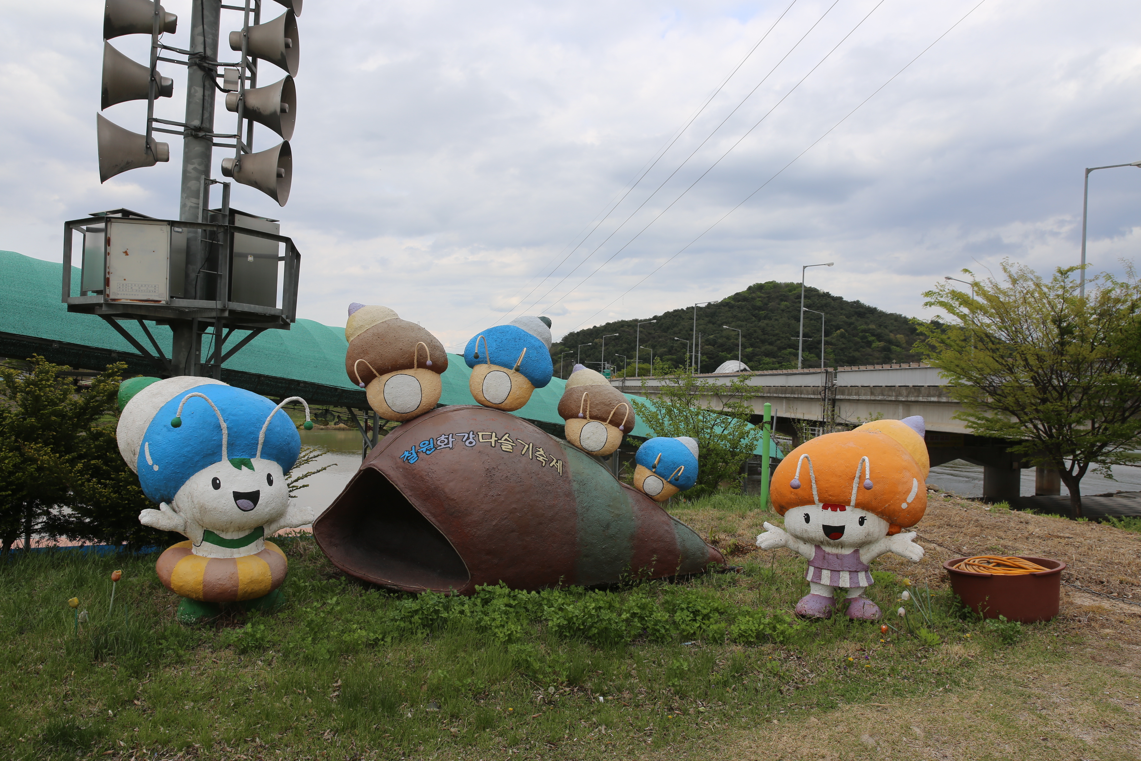 *김화교를 다슬기 와 물고기 조형물로 홍보 활동을 보여주네요.