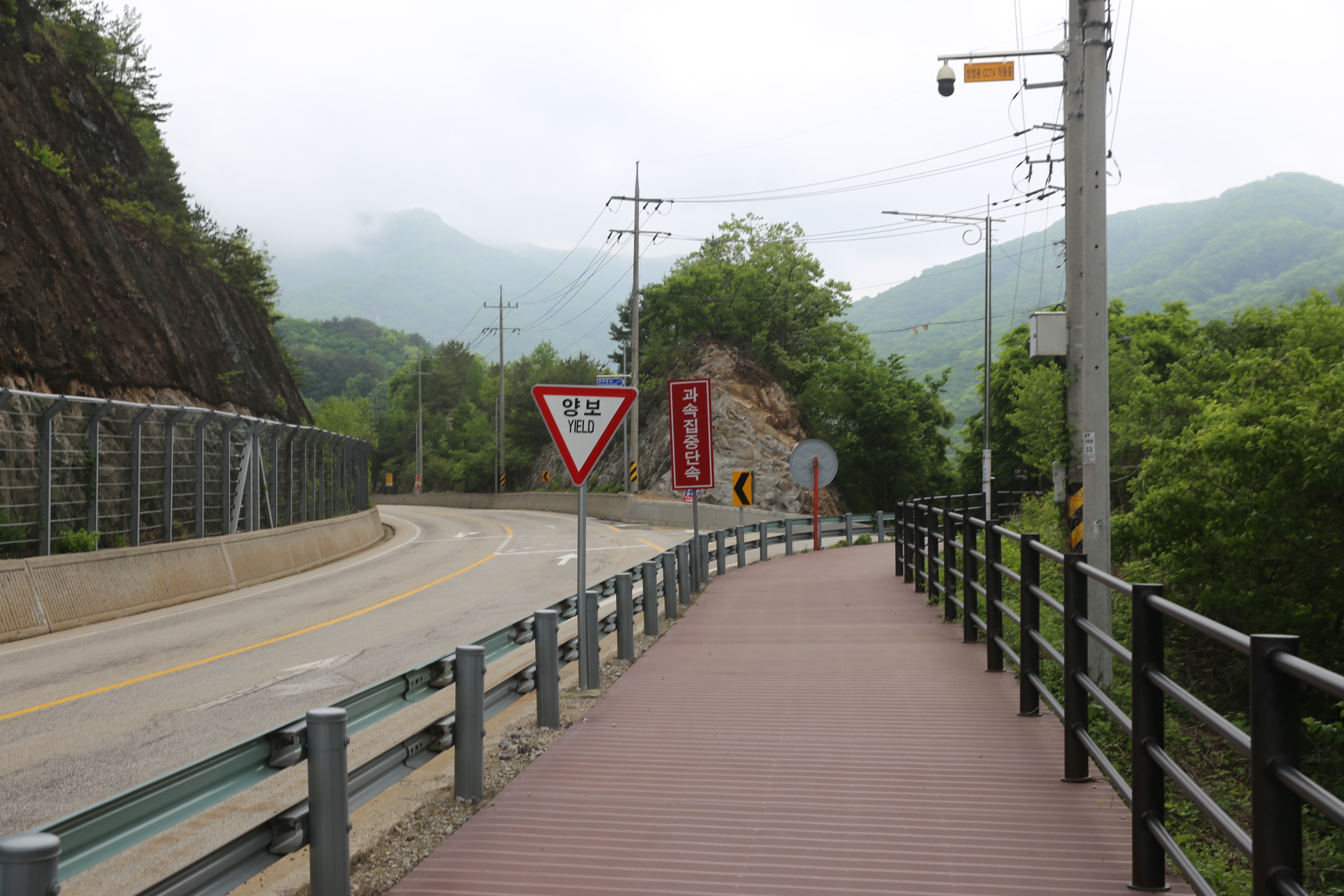 *잠시 후 도로와 합류 계속했어 복주산 자영휴양림 입구까지 도로따라 진행 인도가 따로 구분되어 있어 걷기에는 문제 없어요.