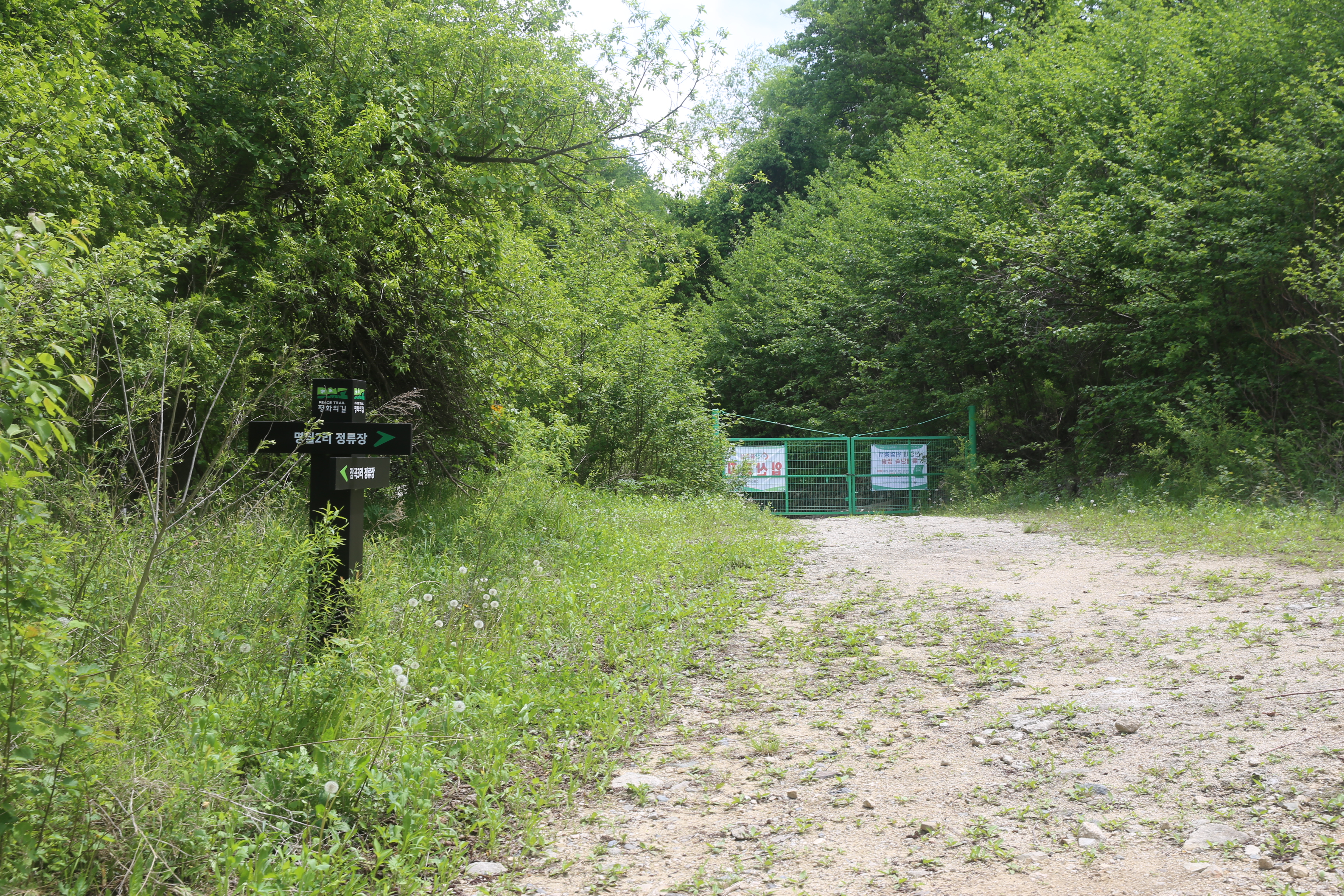*복주산 휴양림입구 도착 평화의 길 걷고 있다니까 입장은 무사 통과.