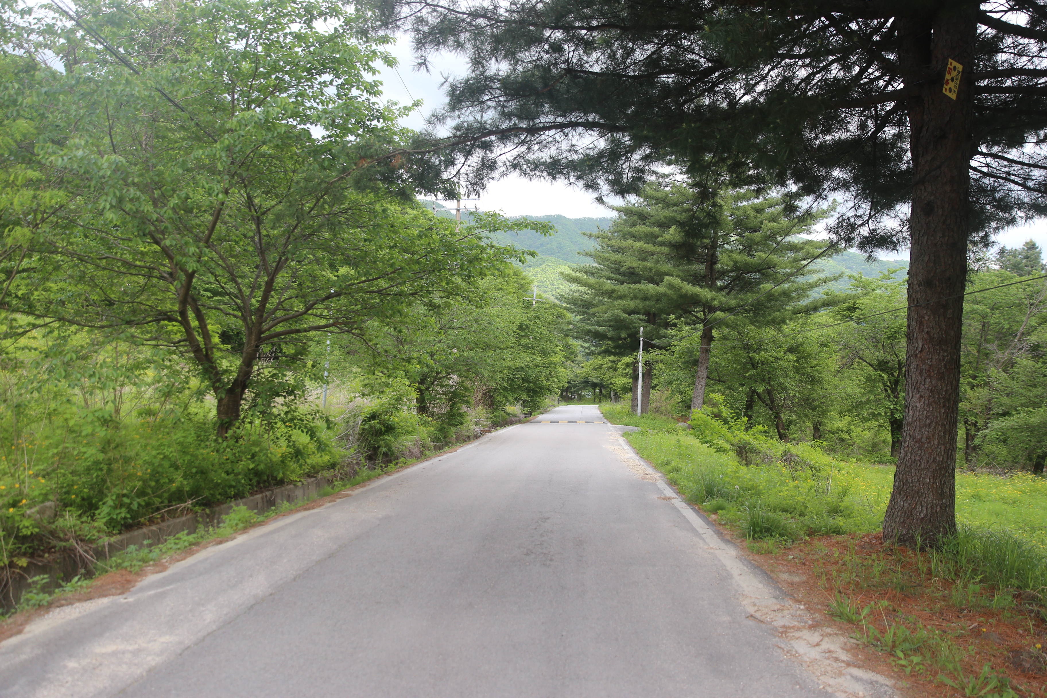 *도로에서 우측으로 샛길 진행 양쪽으로 나무가 우거진 일직선 오솔길이 멋지게 보입니다.